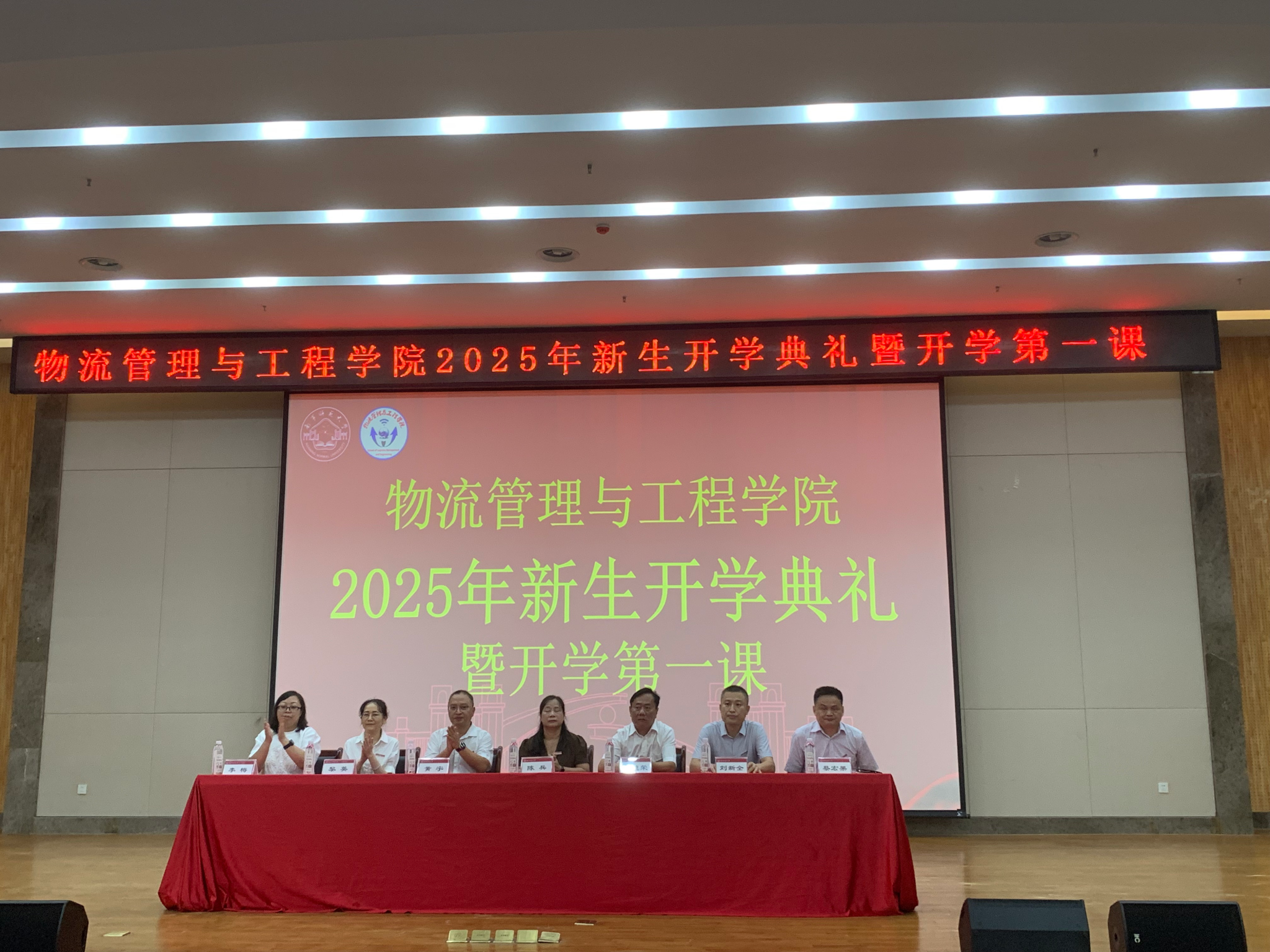 9月7日上午,物流管理与工程学院2025级新生开学典礼暨开学第一课在武鸣校区图书馆报告厅举行。学院党委书记陈兵、院长汪德荣、党委副书记黄宇、副院长刘新全、副院长黎英、副院长蔡宏果、院长助理李梅,各系主任、硕士生导师代表、辅导员、2025级各班班主任及全体新生参加活动。此次典礼由红蜻蜓艺术团主持组主持。