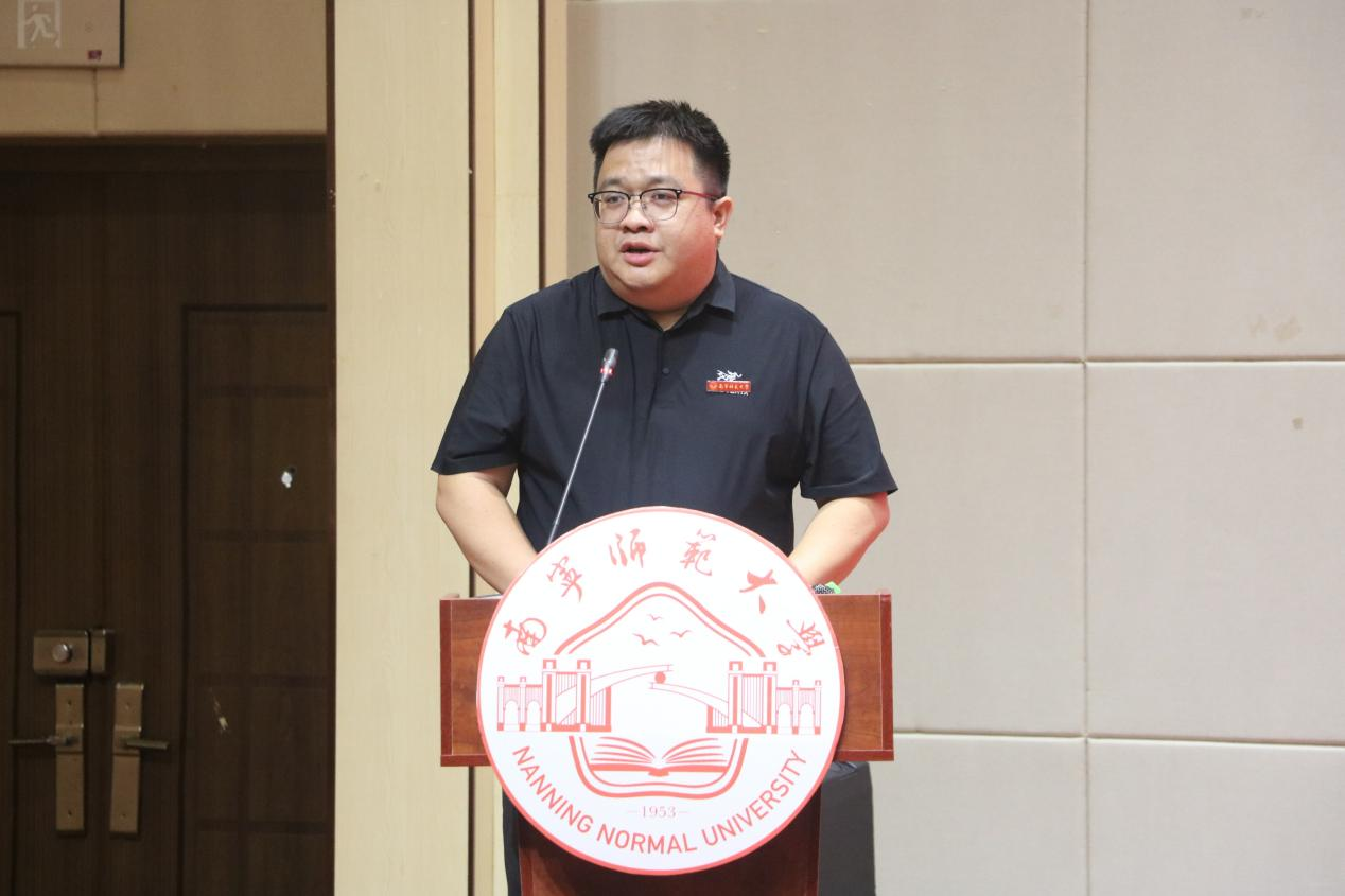 开学典礼在庄严的国歌声中拉开了帷幕。首先,梁颖涛院长以三个关键词“破界、扎根、共生”开启这场与2025级新生双向奔赴的成长对话,强调了新传学子应具有的活力与责任。他希望新传学子在精通技术的同时保持对真相的敬畏,坚守新闻人的温度与良知,深入实地记录广西的发展故事,做文化的摆渡人、时代的记录者、未来的定义者。