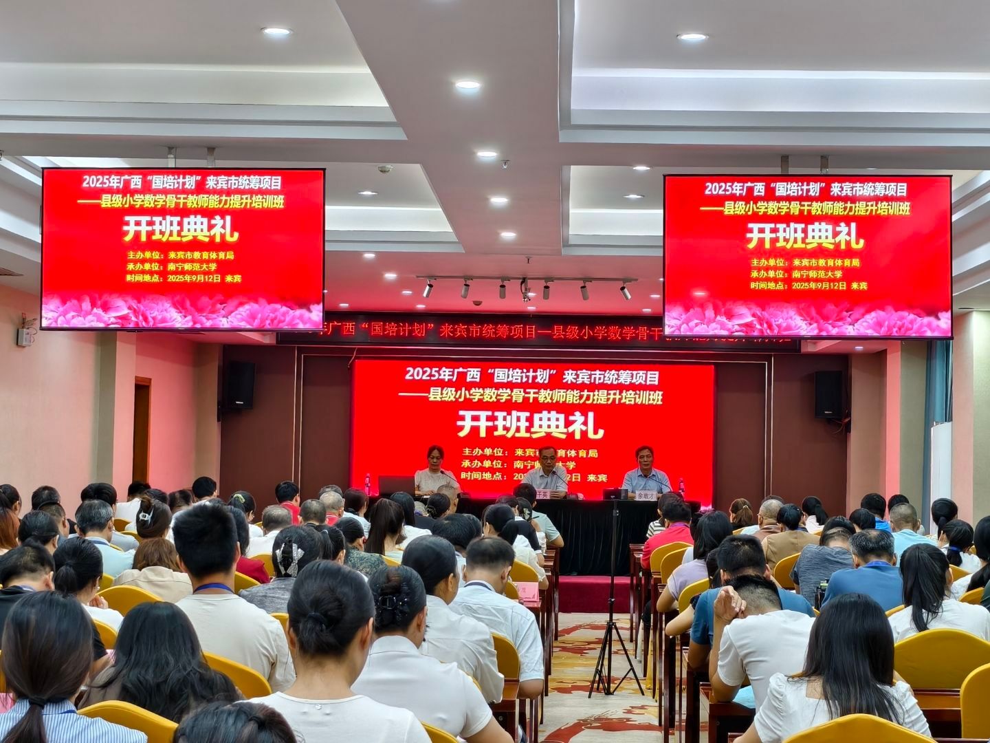 9月12日,2025年广西“国培计划”来宾市统筹项目——县级初中数学骨干教师能力提升培训班与县级小学数学骨干教师能力提升培训班的开班典礼,在来宾市同步举行。两项培训均由开元官网数学与统计学院承办,旨在提升来宾市县级初中、小学数学骨干教师的教学能力,为当地基础教育质量的提升注入新的活力。
