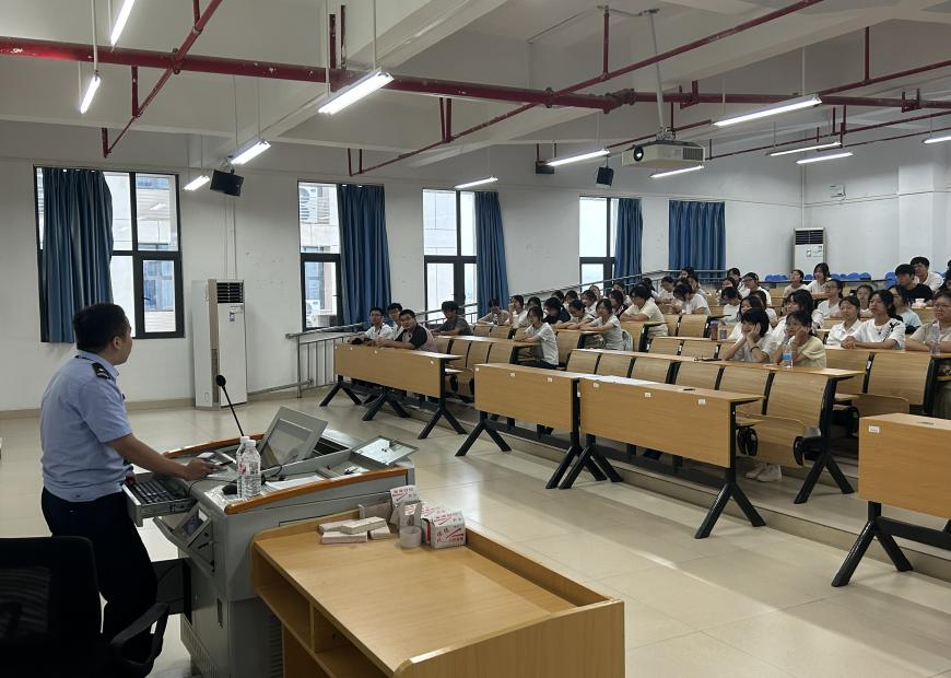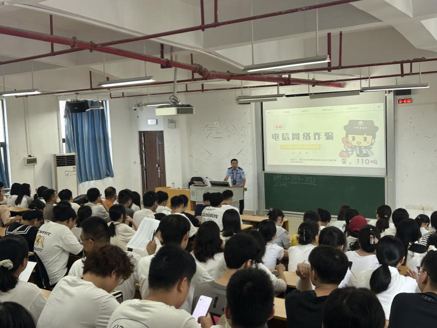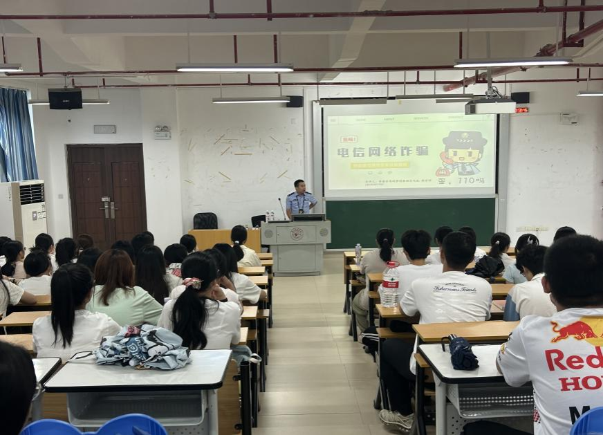 为提升新生防范电信网络诈骗的意识和能力,法学与社会学院分别于9月9日、9月12日在五合校区文综楼801教室、文综301教室举办了“防诈于心,护航青春”反诈宣传培训会。本次培训邀请南宁市公安局仙葫派出所民警赖世祥警官进行主讲,培训主要面向2025级全体新生,通过民警专业讲解和真实案例教学,切实增强学生识诈、防诈能力。