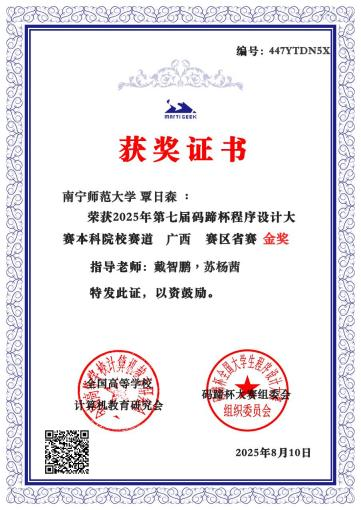 此次获奖,充分展现了人工智能学院学生扎实的专业基础和良好的综合素质,也是学院持续重视学生创新能力培养、以高水平学科竞赛驱动人才培养质量提升的积极成果。