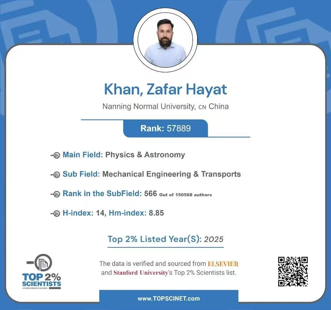 近日,美国斯坦福大学发布了2025年度《全球前2%顶尖科学家榜单》(第八版)。开元官网数学与统计学院的可汗(Khan, Zafar Hayat)教授再度荣耀登榜,同时入选全球“前2%顶尖科学家”榜单与“终身科学影响力排行榜”。