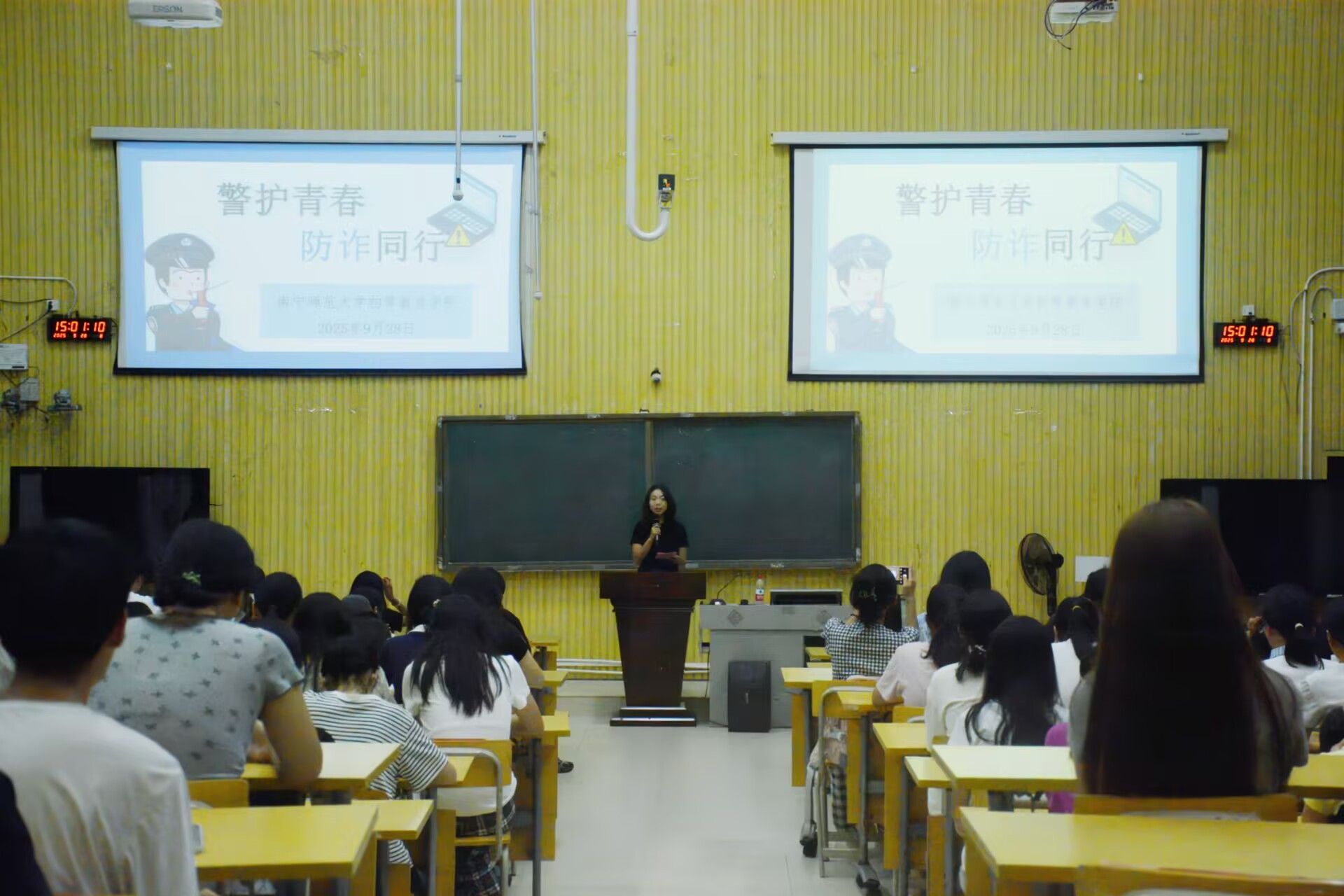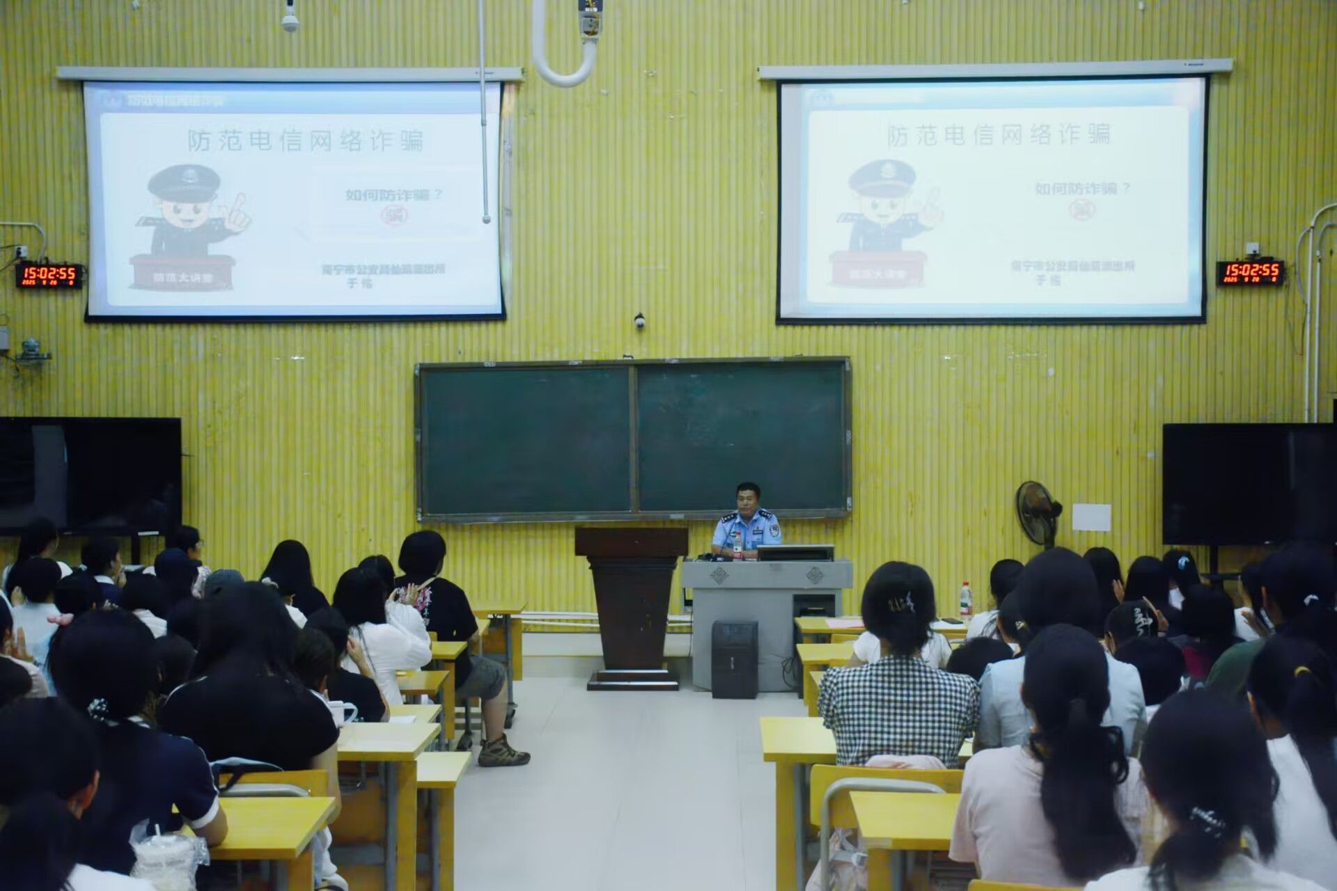 为帮助2025级新生提升反诈识骗能力与自我保护意识,精准识别校园高发诈骗套路,有效降低校园诈骗案件发生率,营造安全和谐的校园环境,初等教育学院于9月28日下午在五合校区五综楼107教室开展反诈宣传活动。本次活动特邀南宁市公安局仙葫派出所民警于佑主讲,学院辅导员覃诗雅及2025级新生共同参与。
