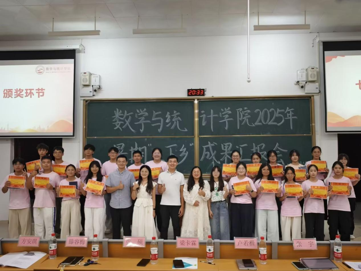 为进一步点燃学生服务社会的热情,以分享交流凝聚实践经验、找准改进方向,9月25日,数学与统计学院在实验2A-105教室顺利举办2025年“三下乡”成果汇报会,全面复盘实践成效,共话乡村教育发展与青年责任担当。