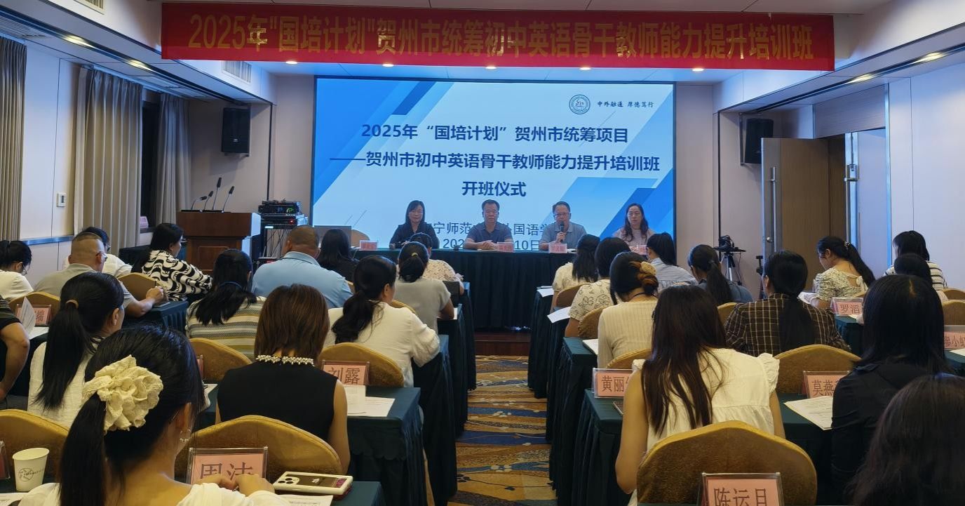由开元官网外国语学院承办的2025年 “国培计划” 贺州市统筹项目--贺州市初中英语骨干教师能力提升培训班于10月10日在南宁正式开班。外国语学院院长陈光伟、外国语学院副院长高飞雁、贺州市师培中心罗义初主任及贺州市各初中80名英语骨干教师出席开班仪式。