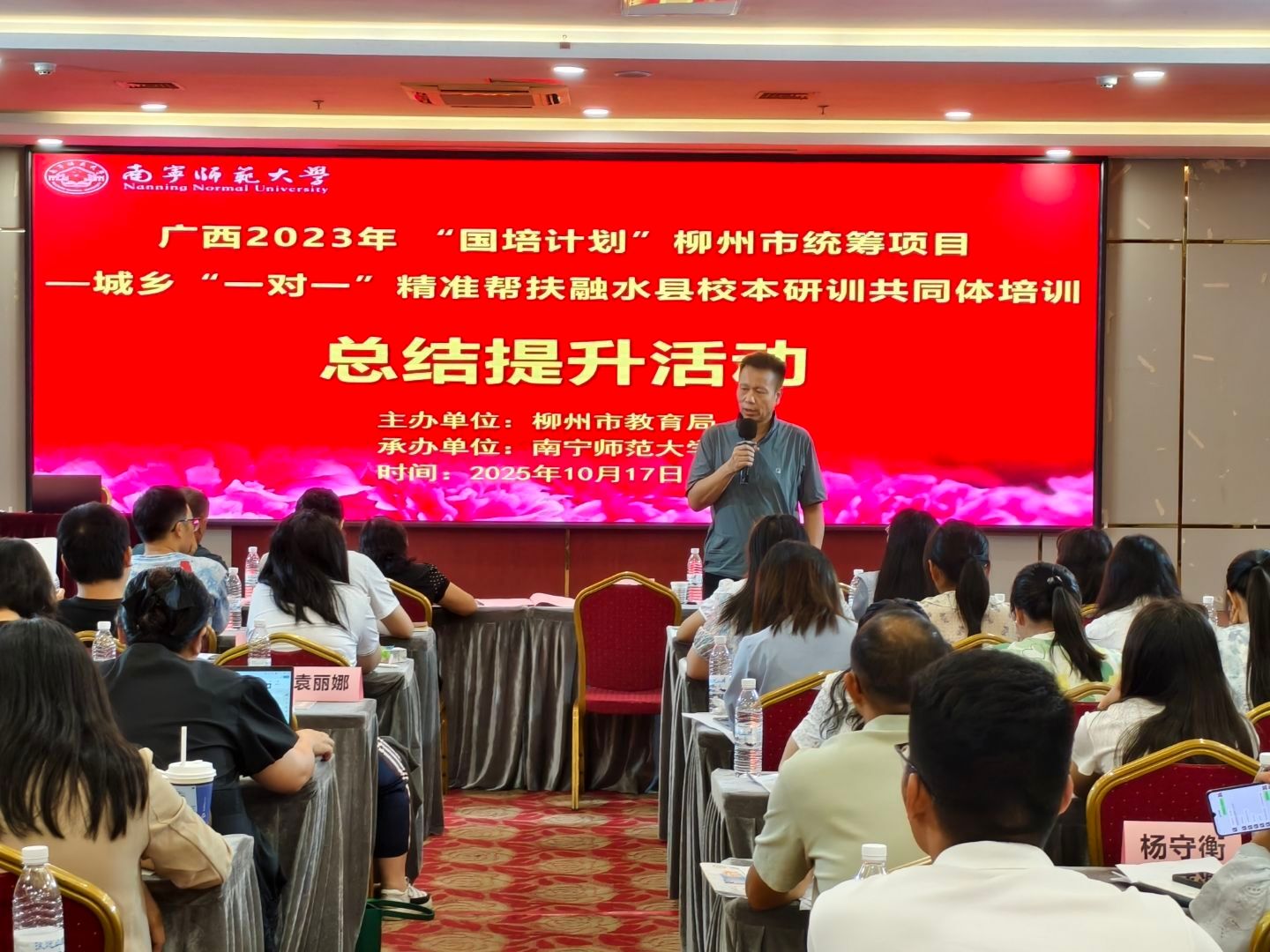 近日,由柳州市教育局主办、开元官网承办的广西2023年“国培计划”柳州市统筹项目——城乡“一对一”精准帮扶融水县校本研训共同体培训顺利结束。该项目自2023年9月启动,至2025年10月18日圆满收官,在为期两年多的时间里,通过系统性、多层次的培训安排,为提升融水县教师教学水平和学校教育质量做出了积极且深远的贡献,成为推动城乡教育协同发展的又一成功实践。