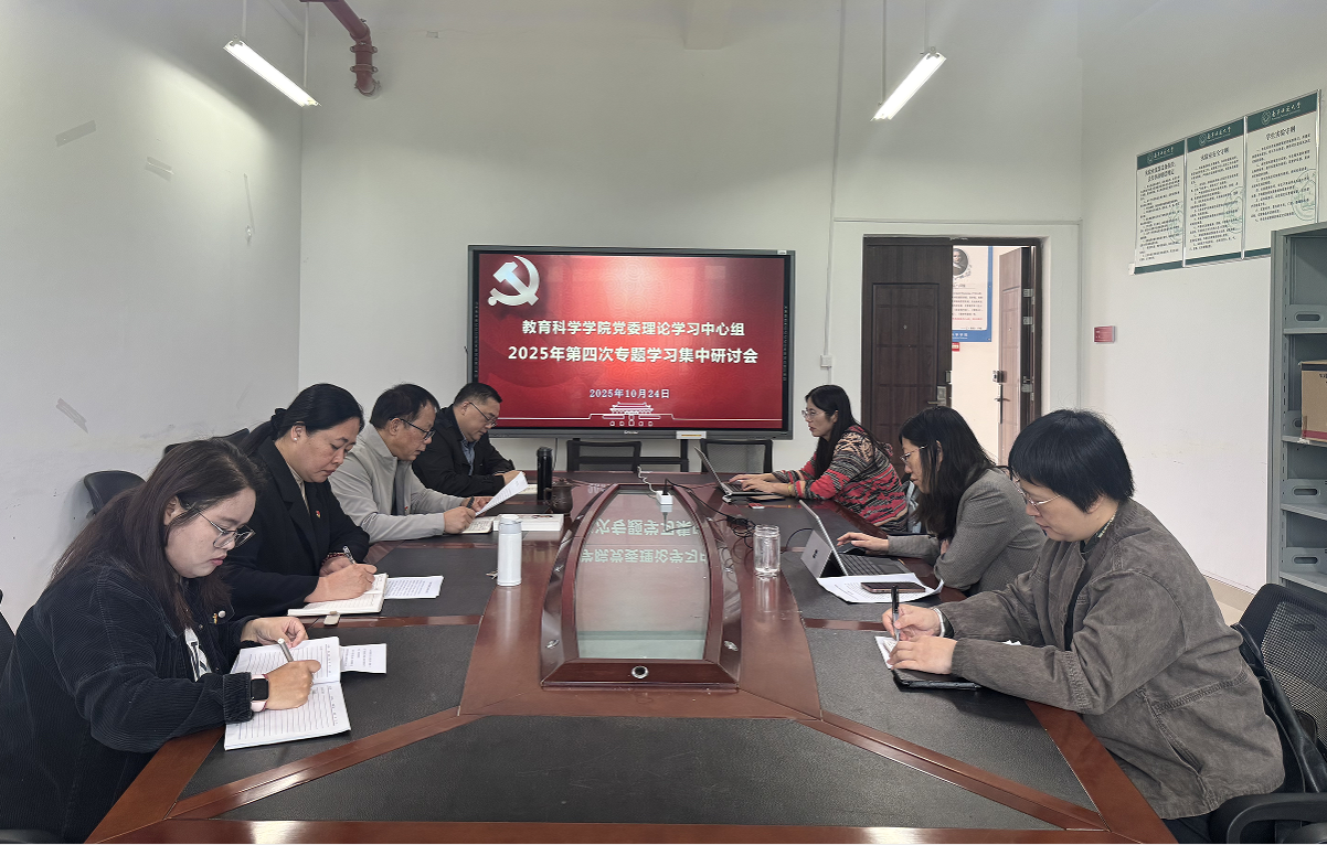 10月24日上午,教育科学学院党委在五合校区理综楼1004-1会议室召开党委理论学习中心组2025年第四次专题学习集中研讨会。学院党委书记余朝文主持会议,党委委员、纪委委员参加会议。