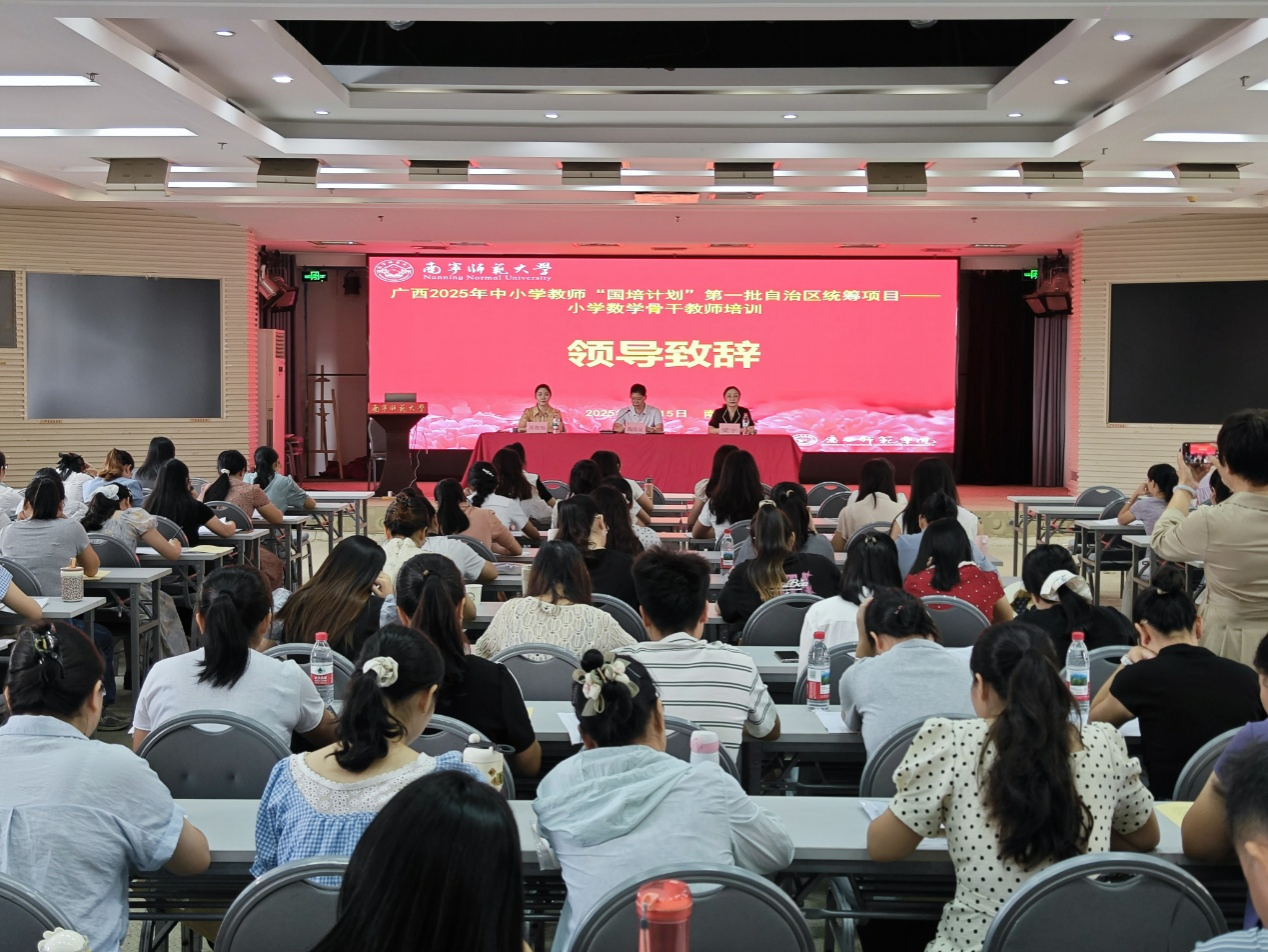 为进一步提升广西小学数学骨干教师的专业素养和学科教学能力,10月15日上午,由自治区教育厅主办、KY开元集团官网承办的广西2025年“国培计划”第一批自治区统筹项目——小学数学骨干教师培训班在南宁顺利开班。开元官网初等教育学院院长梁宇、教师教育学院副院长陶源泉、初等教育学院数学与信息技术教研室教师周俊伽及来自广西各地的130位小学骨干教师参加了此次培训班的开班。