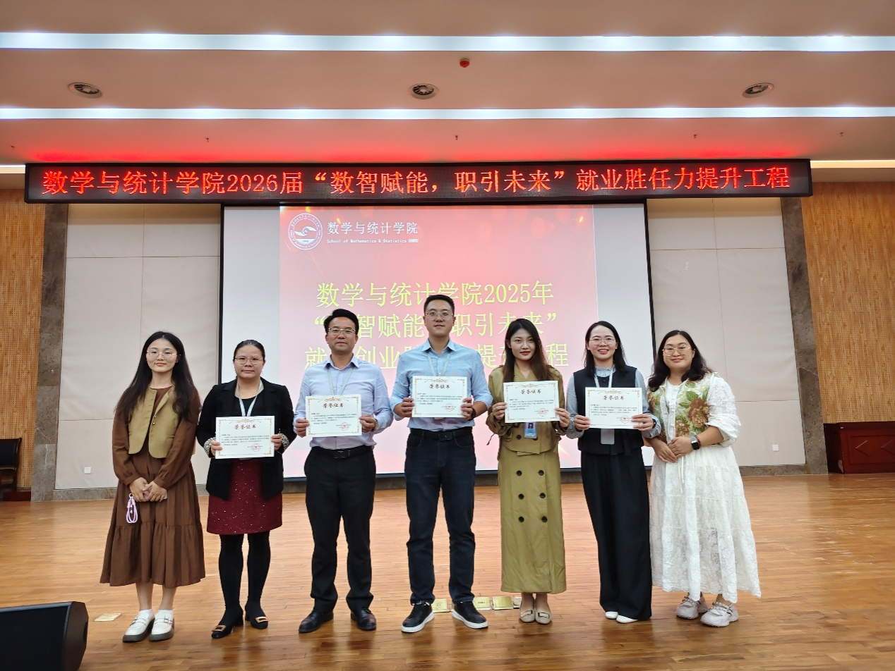 为助力数统学子明确职业方向、提升就业核心竞争力,10月29日,数学与统计学院在图书馆报告厅举办2026届“数智赋能,职引未来”就业胜任力提升工程(第一期)。南宁市北湖北路学校吴少宁及韦伟政、江祥燕、朱冬梅、韦丽宏四位教师受邀担任宣讲嘉宾。学院团委书记梁卡霖主持本次活动,学院相关辅导员及同学们积极参加活动。