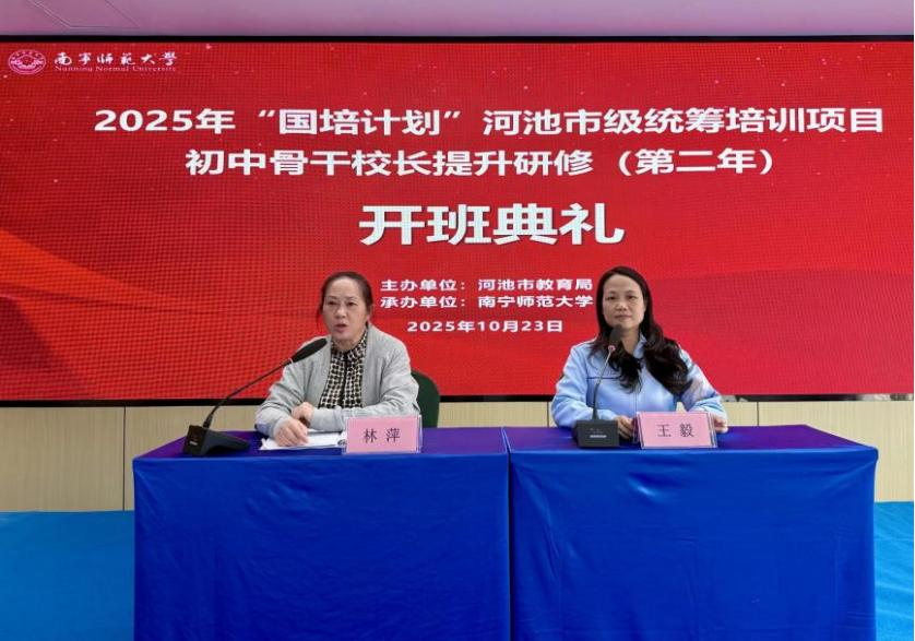 10月23日下午,开班典礼在南宁如期举行,培训班主任王毅老师与河池市教育局教师培训中心林萍主任共同出席。王毅老师简要介绍KY开元集团官网办学基础,希望学员明确目标、学以致用。林萍主任对本次培训班的筹备与组织给予高度肯定,希望学员珍惜机会、发挥骨干作用。随后,周代许老师以“乡村教育振兴背景下校长专业发展与学校制度建设”开启首场专题讲座,结合案例解析实践路径。