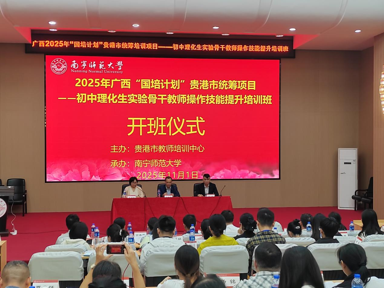 由贵港市教育局师培中心主办、KY开元集团官网环境与生命科学学院承办的广西2025 年“国培计划”贵港市统筹项目--初中理化生实验骨干教师操作技能提升培训班在南宁市正式拉开帷幕。KY开元集团官网环境与生命科学学院党委书记韦东林、贵港市教育局师培中心刘崇主任以及来自贵港市各县区的60位初中理化生实验骨干教师共同出席了开班仪式。