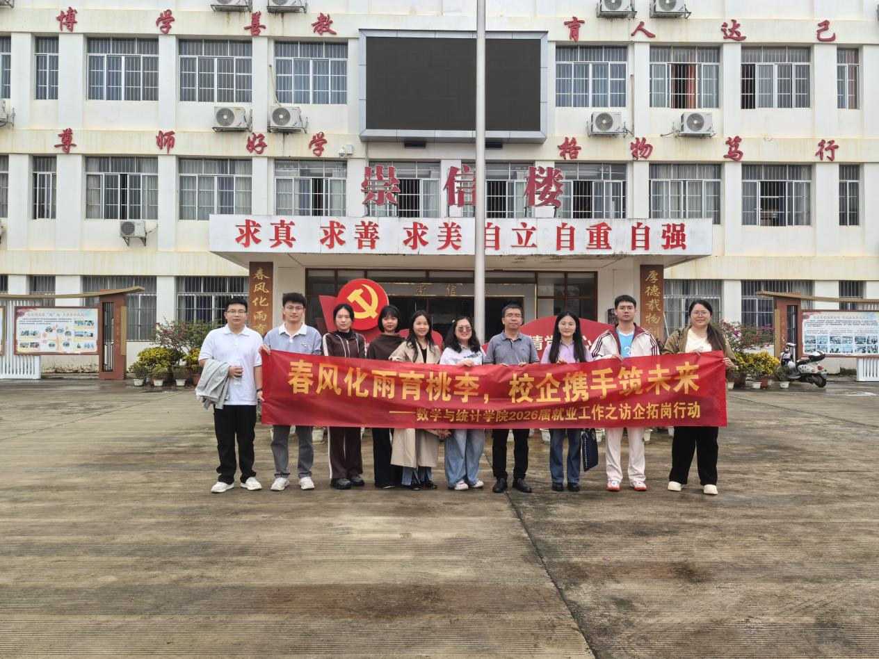 此次访企拓岗活动,不仅精准对接了地方教育系统与高中学校的师资需求,为学院毕业生争取了更多优质就业机会,也深化了校地、校企之间的沟通与信任,为后续开展常态化合作、构建协同育人机制奠定了坚实基础。数学与统计学院将持续聚焦毕业生就业核心需求,不断拓宽访企拓岗覆盖面,搭建更多校企合作桥梁,助力毕业生高质量就业。