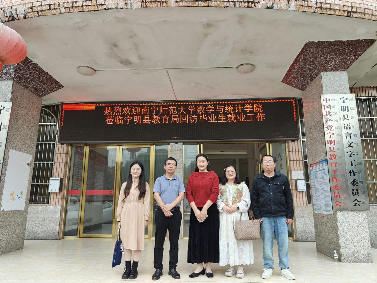 为深入贯彻落实“访企拓岗促就业”专项行动要求,进一步拓宽毕业生就业渠道,深化校地、校企合作,11月7日至8日,数学与统计学院党委副书记王卫彬率学院团委书记及相关辅导员一行四人,先后赴宁明县教育局、崇左市崇青园高级中学开展就业合作交流活动,为学院毕业生搭建更广阔的就业平台。