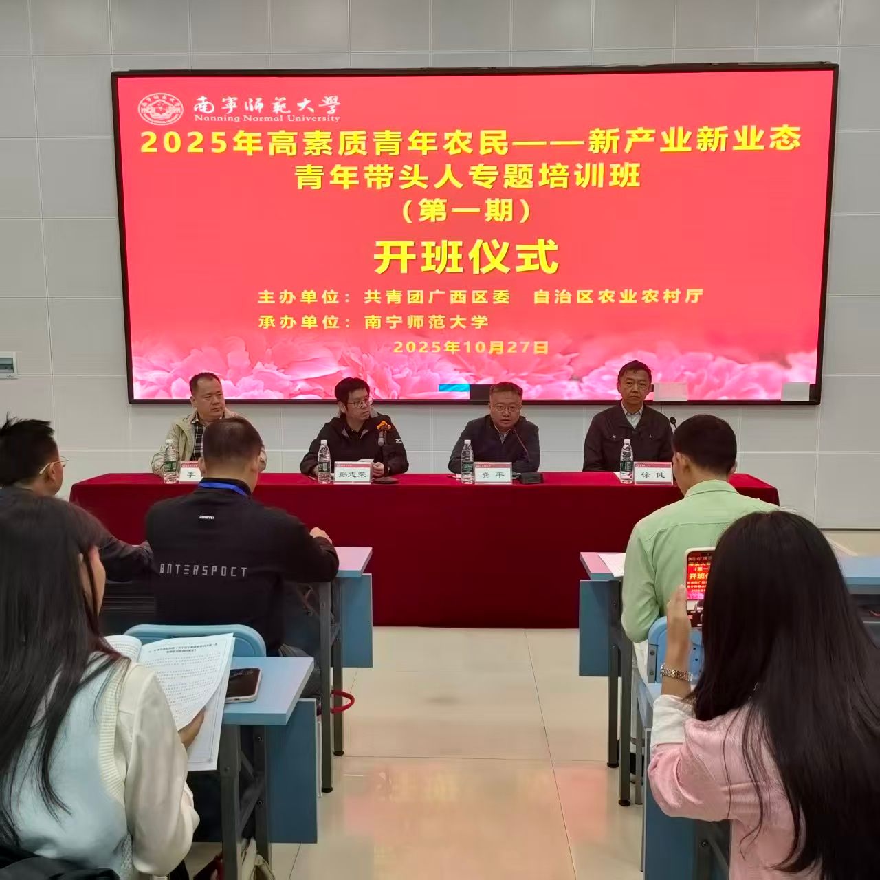 10月26日至11月8日,由共青团广西区委、自治区农业农村厅主办,KY开元集团官网承办的2025年高素质青年农民——新产业新业态青年带头人专题培训班分两期在开元官网明秀校区开展。自治区农业农村厅农村社会事业促进处处长龚平、共青团广西区委青年发展部副部长彭志荣、自治区农业农村厅正高级工程师朱光书、开元官网继续教育学院院长徐健出席开班仪式。来自全区的100名农村青年致富带头人、青年家庭农场经营者、农民合作社带头人及返乡大学生分为2期参训,每期培训7天。