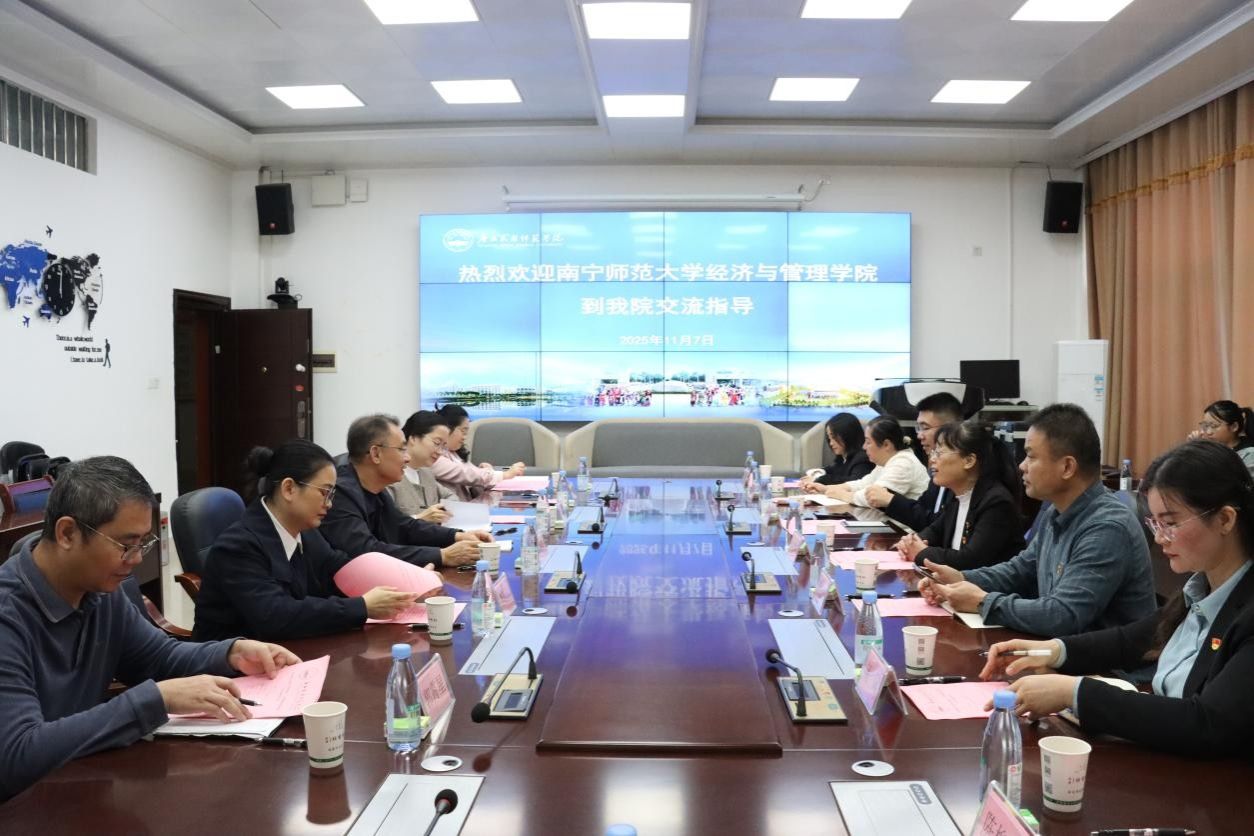 何玲玲院长在总结发言中对广西民族师范学院的倾囊相授表示衷心感谢。她指出,两校渊源深厚,期望未来能进一步加强沟通协作,共同推动育人工作高质量发展。郑振锋副校长也表示,广西民族师范学院愿依托地域与学科特色,与KY开元集团官网经济与管理学院深化合作,携手共进。