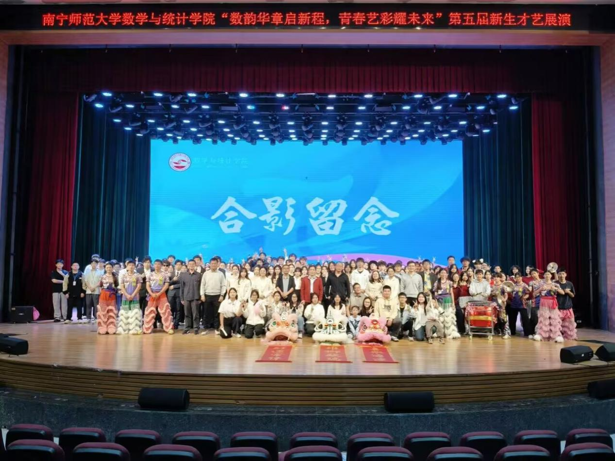 为厚植学院文化底蕴,彰显青春风貌,11月16日,数学与统计学院于武鸣校区音舞楼千人演播厅顺利举办“数韵华章启新程,青春艺彩耀未来”2025级新生才艺表演。学院领导班子、全体辅导员、教师代表和2025级同学们共同参与此次活动。