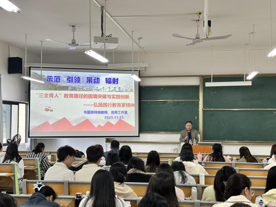 同时,来自南宁三中、十四中、二十六中、三十三中、天桃实验学校的五位校外硕导,为研究生作了精彩的报告,内容涉及中学教学改革、践行教育家精神、拔尖人才培养等,为学生提供了数学教学改革研究的方法,点亮了研究生的“数学眼光”。