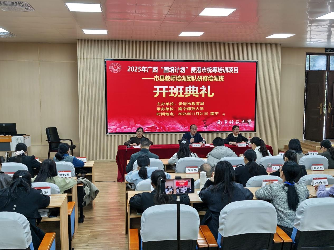 为进一步加强贵港市教师培训团队专业化建设,提升区域教师培训质量与水平,11月21日下午,2025年贵港市统筹培训项目——市县教师培训团队研修培训班开班典礼在开元官网举行。开元官网教务处覃城阜处长、本次培训专家团队成员及班主任代表参加典礼并致辞,来自贵港市港北、港南、覃塘三区的70名教师培训团队主要成员齐聚一堂,正式开启为期10天的研修学习。