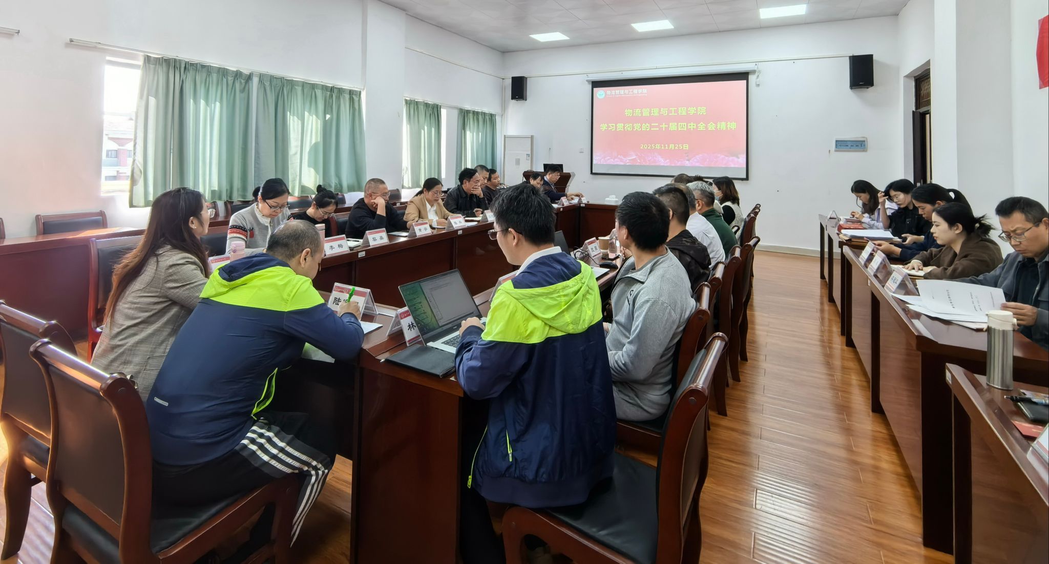 11月25日下午,物流管理与工程学院组织召开专题会议,深入学习贯彻党的二十届四中全会精神,并结合学院发展实际,研究部署贯彻落实工作。会议由党委书记陈兵主持,学院全体教职工参加会议。