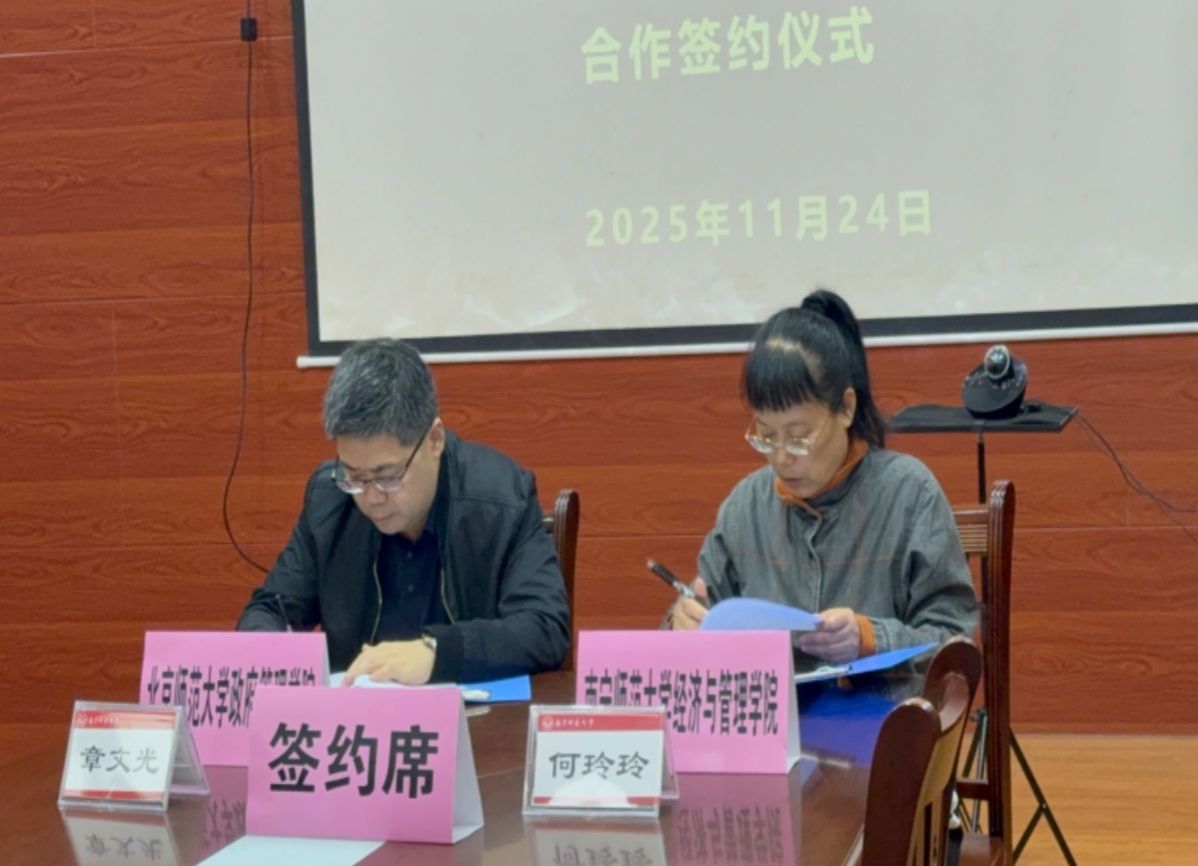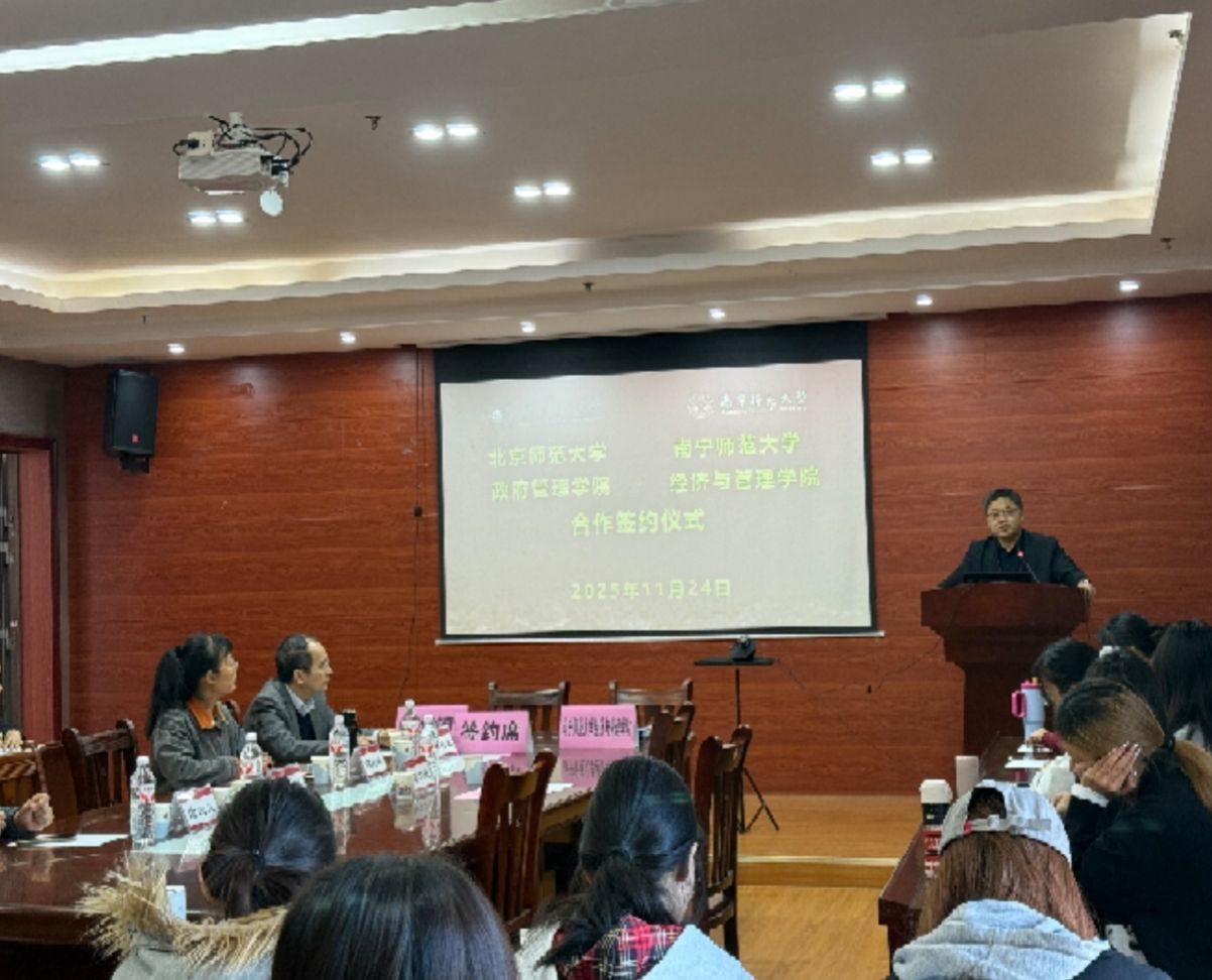2025年11月24日,北京师范大学政府管理学院与KY开元集团官网经济与管理学院合作签约仪式在KY开元集团官网五合校区理楼515会议室举行。仪式由KY开元集团官网经济与管理学院党委书记韦海鸣教授主持,北京师范大学政府管理学院院长章文光教授、KY开元集团官网经济与管理学院院长何玲玲教授及学院领导班子成员、师生代表共同出席签约仪式。