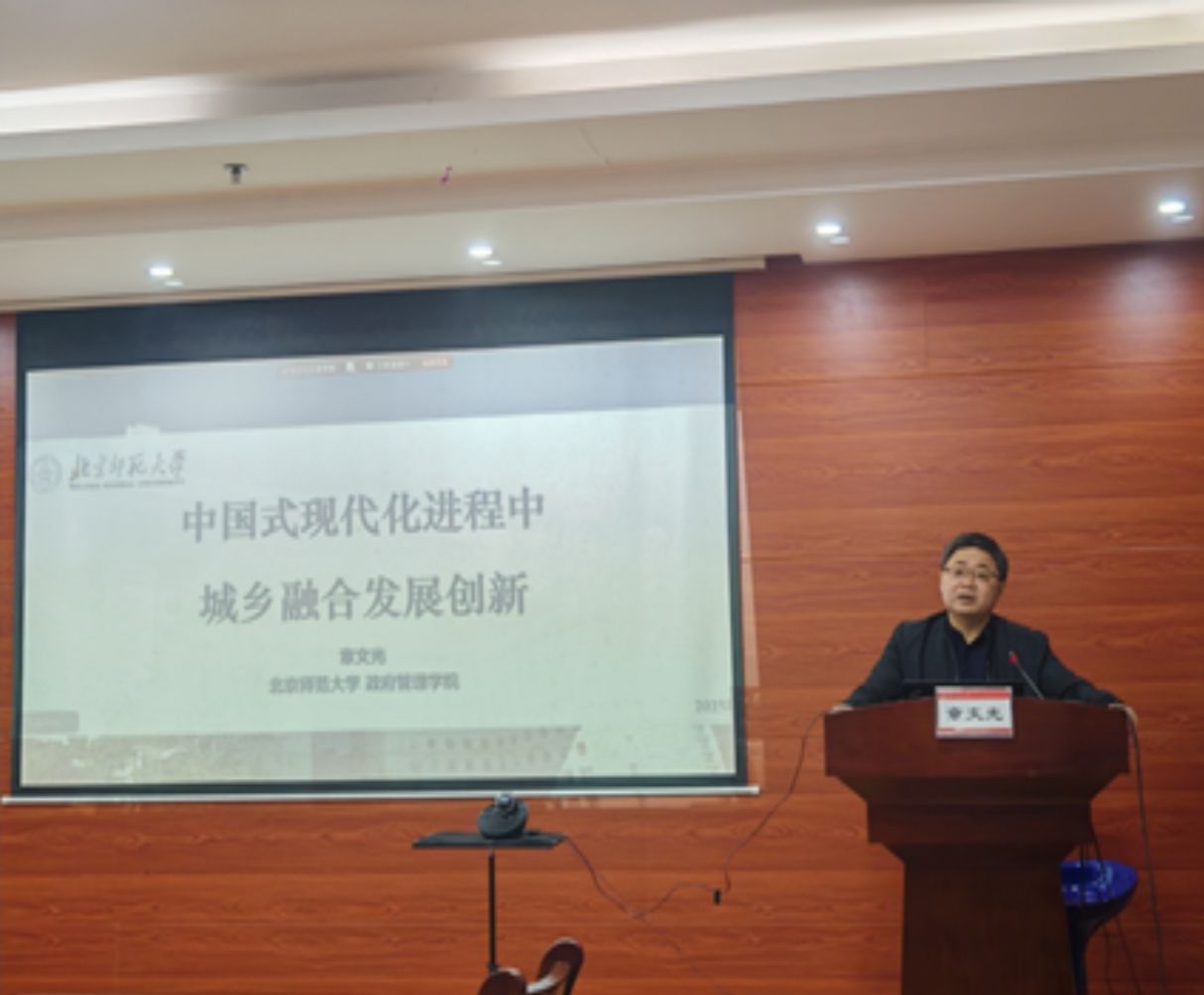 签约仪式结束后,章文光教授为学院师生作了题为“中国式现代化进程中城乡融合发展创新”的专题讲座。在互动环节,他悉心解答同学们的问题,并鼓励大家立足区域实际,将专业知识融入地方治理需求,积极投身数字政府与智慧城市管理等新兴领域,锤炼本领、提升素养。现场交流气氛热烈,同学们纷纷表示,讲座兼具理论高度与实践温度,为未来的学术方向与职业发展提供了有益指导。