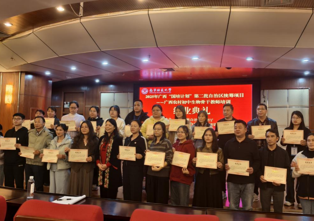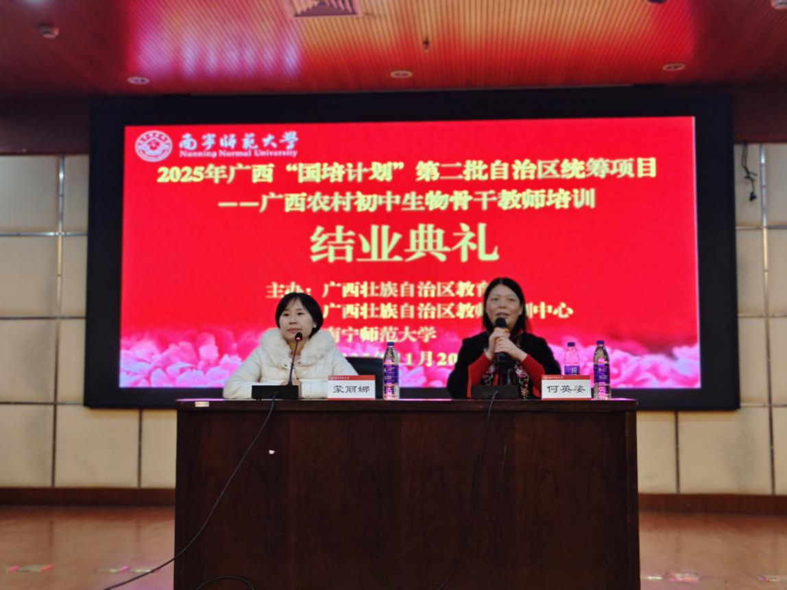 11月20日,由广西壮族自治区教育厅、广西壮族自治区教师培训中心主办,开元官网环境与生命科学学院承办的广西2025年“国培计划”第二批自治区统筹项目——广西农村初中生物骨干教师培训班圆满结束。