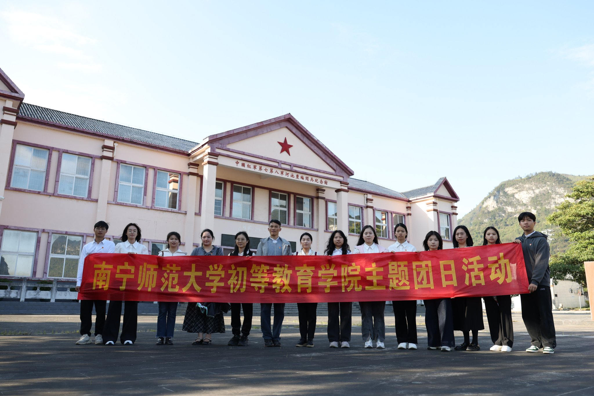 为引领青年团员厚植红色基因,坚定理想信念,在青春赛道上勇担时代使命,11月23日,初等教育学院组织各团支部团员代表前往河池市金城江区开展“青春向党学党史 红色传承建新功”主题团日活动。学院团委书记李欣及学工办辅导员秦晴、李露露、韦文平参与活动。