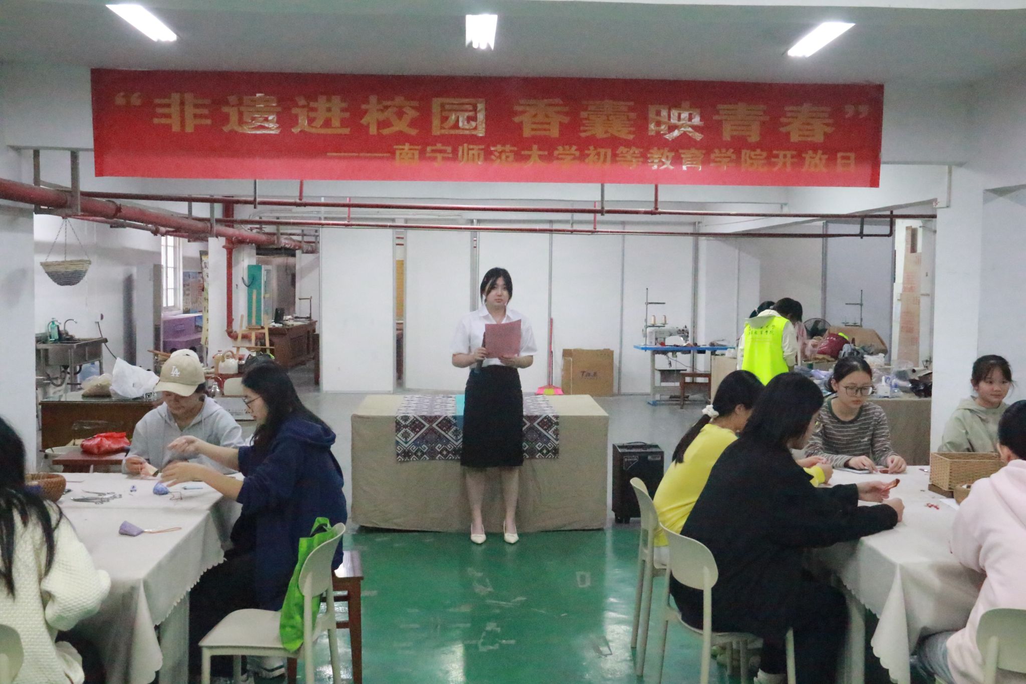 11月25日,初等教育学院在五合校区劳动吧开展“非遗进校园,香囊映青春”开放日活动,各兄弟二级学院学生代表参与活动。