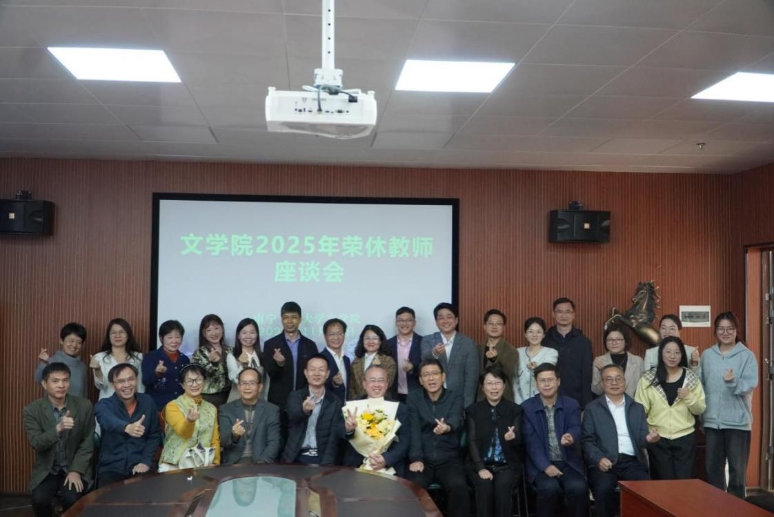 座谈会上宾恩海教授深情述说了自己三十九年“为人师表”的个人成长史,并真诚感谢文学院为自己所提供的民主自由的教学环境与宽松温和的学术环境以及历届学生为他的成长不断托举、鼓励、理解而最终塑造成了他作为一个教师的形象,他也在心中期待各位同仁在教学与研究中真心喜爱自己的教学对象、真心喜爱自己的教学内容,深入情感、人性、生命之中去,不断发现文学的魅力和价值,塑造自我,成就作为教师的独具一格的学术贡献与社会意义,宾恩海教授也同时表示珍视老教师的智慧与经验传承,助力优化文学院的教学与科研环境,为文学院新的发展再做新贡献。