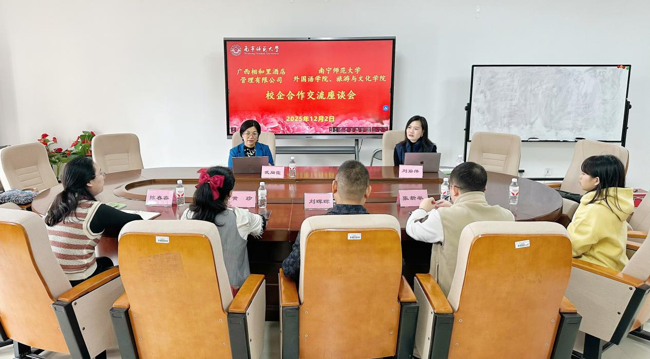 12月2日上午,广西相和里酒店管理有限公司总经理武同霞、总经理助理刘碧萍到访开元官网外国语学院与旅游与文化学院。外国语学院副书记刘晖晖、旅游与文化学院副书记黄珍及相关学院就业负责人接待,双方重点对接就业实习基地建设及校企深度合作事宜。