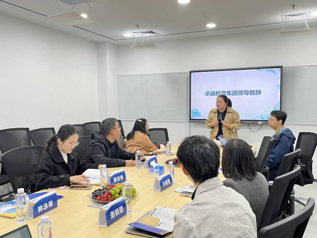 随后的座谈会上,伍金玲对来自母校的老师、校友表示欢迎,并介绍集团发展与校区优势,希望能有更学弟学妹加入卓越教育集团;王卫彬详述学校办学特色、学院学科建设及毕业生情况,期待深化合作;校招高级招聘管理师车力行讲解集团发展、员工培养体系,重点介绍素质教育实践与线上AI教学成果。