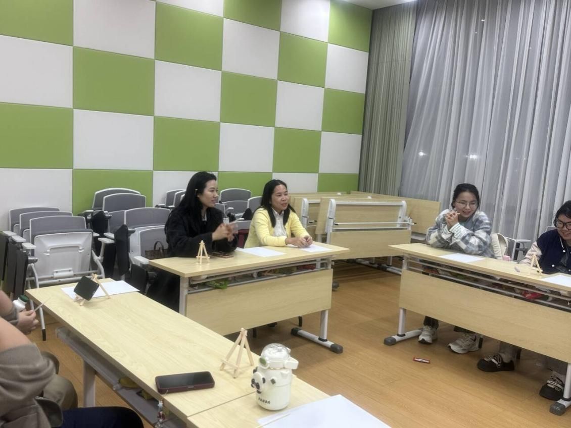 活动由兼职辅导员王晓燕主持,在温馨活泼的氛围中正式开启。活动环节设计紧扣团队融合与心理赋能核心,兼具趣味性与实效性。“猜猜我是谁”“剪刀石头布”等破冰游戏迅速打破人际隔阂,让现场氛围持续升温;“信任盲行”环节则通过协作完成任务,帮助助理们建立深层信任与默契,现场欢声笑语不断。“情绪万花筒”与“体验温度计”环节别具匠心,引导大家敞开心扉分享真实感受,引发强烈情感共鸣,进一步加深彼此理解;“优点轰炸”环节将活动气氛推向顶点,助理们真诚赞美对方的闪光点,在阵阵掌声中真切感受到团队的温暖与支持。整场活动巧妙融合趣味互动与心灵交流,让大家在轻松参与中收获成长。