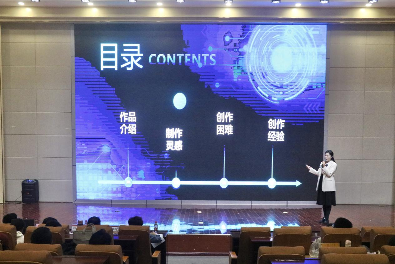 作品展示环节结束后,胡建军老师进行专业点评。他首先对本届大赛参赛作品的整体质量给予高度认可,肯定了同学们将专业知识与时代热点相结合的创作思路。随后,胡老师从作品主题契合度、AI技术应用的现实逻辑性等方面进行细致指导,并针对每组作品的亮点与不足给出切实可行的优化建议,为同学们后续的创作实践提供了宝贵的专业指引。