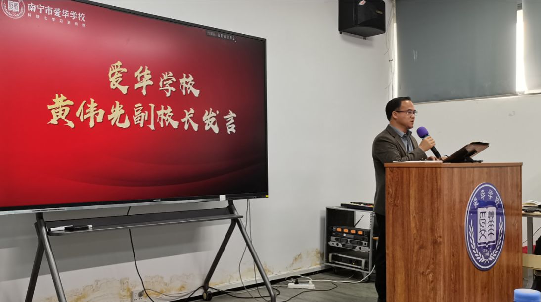 文学院党委副书记吴幼坚对爱华学校的悉心指导表示感谢,并勉励全体实习生秉持教育初心,在实践中勤于反思、善于学习,努力朝着“四有”好老师的目标稳步迈进,为基础教育贡献青春力量。