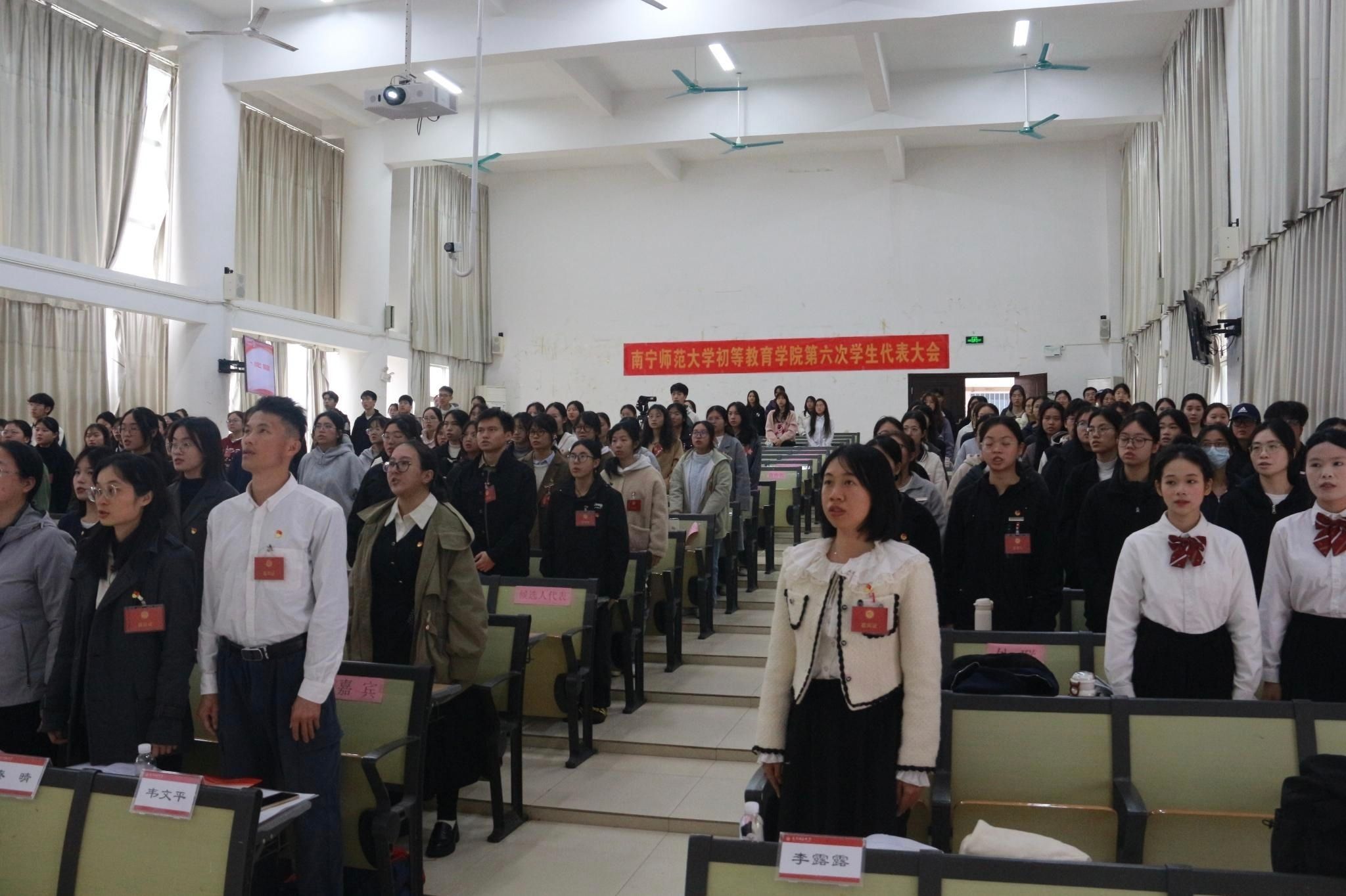 选举过程中,经过与会代表审慎投票、监票人严格监督和计票人细致统计等环节,选举产生了KY开元集团官网初等教育学院第六届学生委员会主席团成员。随后,新当选主席团成员陆韵怡宣读倡议书,从五个维度向全院同学发出行动号召,凝聚青春共识。辅导员李露露在闭幕词中肯定第五届学生会工作实绩并对新一届学生会主席团提出履职期望,勉励代表们锤炼师范品格,为未来发展奠定基础。大会在奏唱校歌中顺利闭幕。