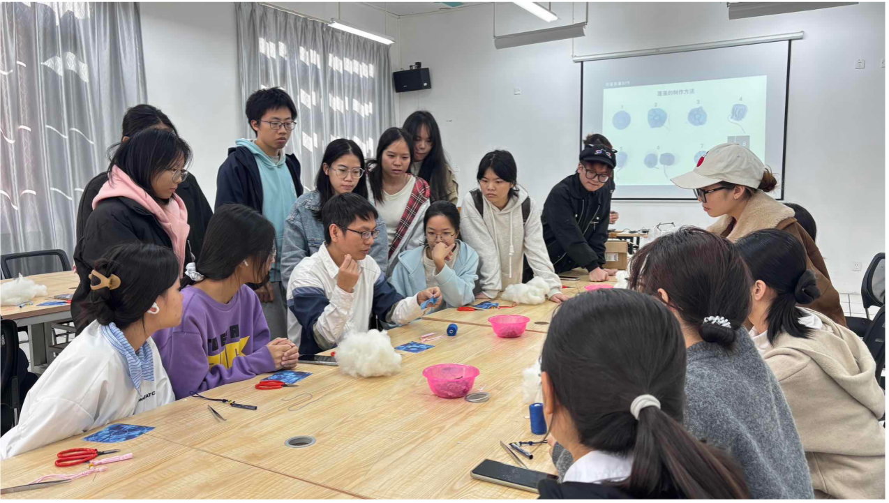 制作过程中,大家相互交流心得、互帮互助,在动手实践中缓解了学业压力,也加深了对广西“非遗”的理解与热爱。此次活动将“非遗”传承与美术疗愈有机结合,既让同学们近距离感受了广西传统手工艺的独特魅力,提升了动手实践能力,也彰显了学院以美育人的教育理念,提升了校园文化育人氛围。