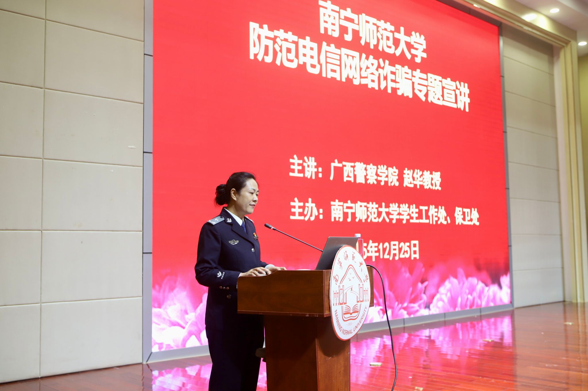 12月25日,自治区教育厅反诈专家宣讲团赵华教授到开元官网五合校区文理综合楼114报告厅顺利开展了反诈防骗主题宣讲活动。开元官网党委学生工作部副部长邓运明、有关学院辅导员与保卫处负责同志全程参与,现场共有约300名学生参加。