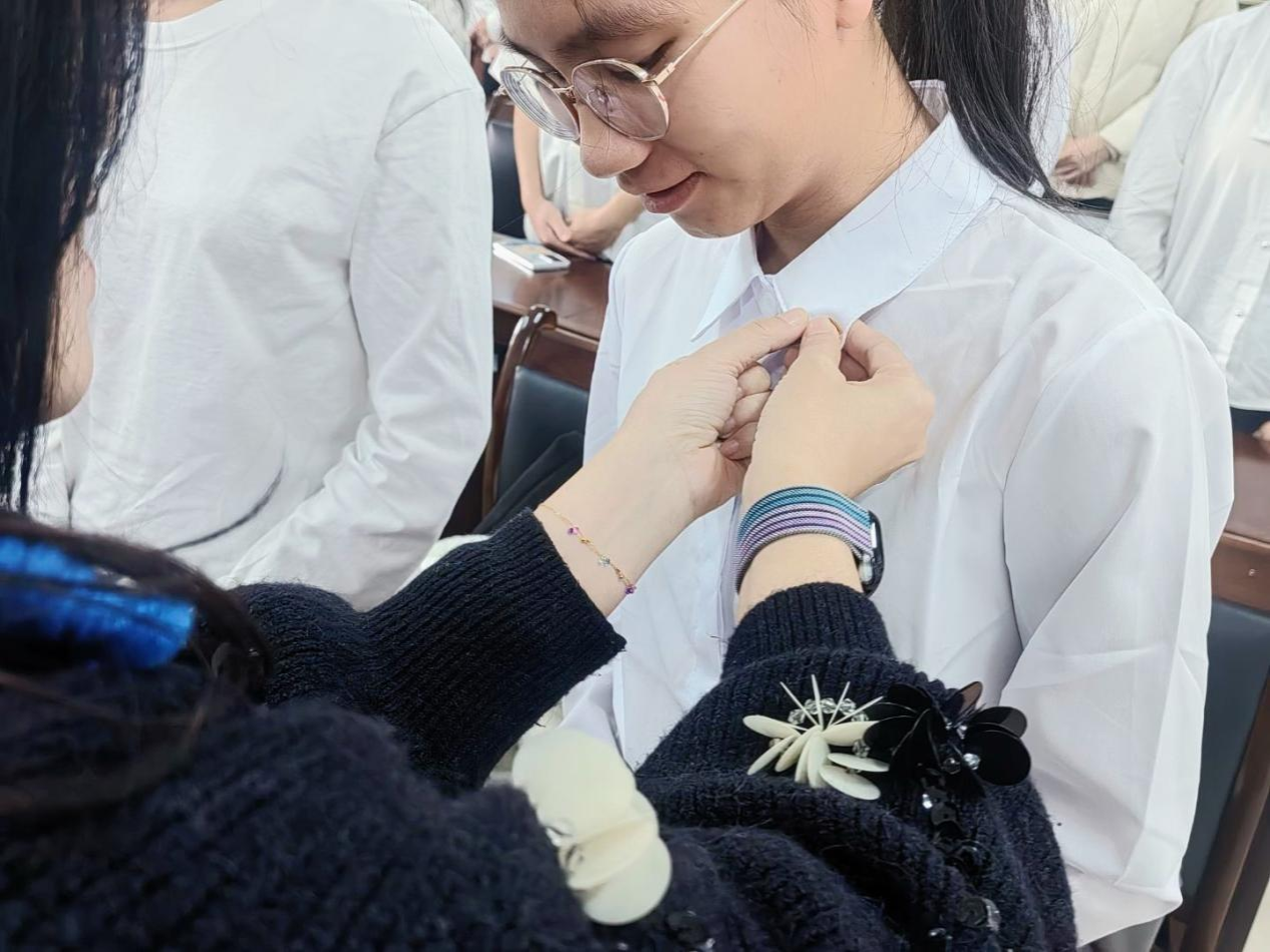 仪式中,龙学禧在致辞中表达了对新团员的祝贺与期望,并勉励他们坚定理想信念,勇担时代责任。龙学禧与辅导员覃辰柳为新团员们逐一佩戴团徽、颁发团员证。新、老团员代表先后发言,新团员代表铿锵表达了矢志奋斗的理想信念,老团员代表庄重传递了传承使命的坚定决心。随后,在工作人员李一鸣带领下,全体新团员面向团旗,举起右拳,进行了庄严宣誓。仪式在嘹亮的团歌声中推向高潮,并在全体人员与团旗的合影中圆满落幕,整个过程规范有序。