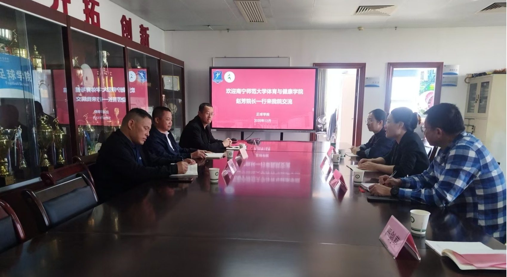 12月23日,调研团队转赴广州体育学院足球学院进行深入交流。广州体育学院足球学院院长朱桂林详细介绍了学院在办学定位、组织架构、人才培养模式创新、社会服务以及国际化拓展等方面取得的显著成效,特别是与教育系统深度协同,创新构建足球人才3+4贯通培养模式的经验。赵芳指出,足球运动的改革发展是建设体育强国的重要一环。KY开元集团官网依托地缘优势,正积极致力于培养高素质足球专业人才,服务广西足球振兴,同时促进与东盟国家的体育文化交流。广体足球学院的先行探索与成功实践,特别是在组织架构、任务规划和资源整合方面的具体举措,为广西—东盟足球学院的筹办工作廓清了思路、树立了标杆。学院将结合自身实际,借鉴宝贵经验,明确发展路径,重点在足球专业人才培养体系构建、产学研用融合、东盟足球文化交流合作等方面着力,努力打造一个特色鲜明、影响力突出的区域性足球学院。