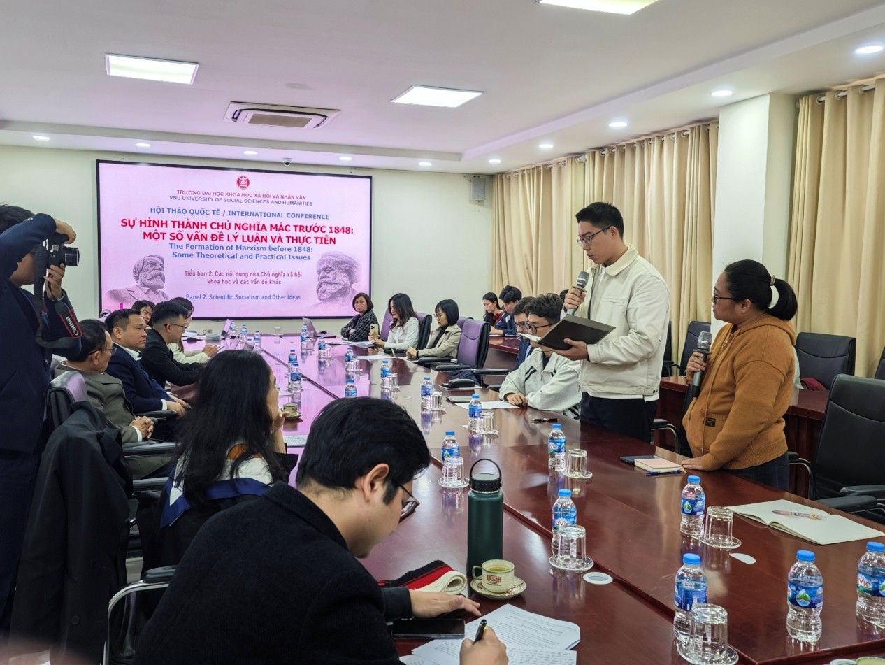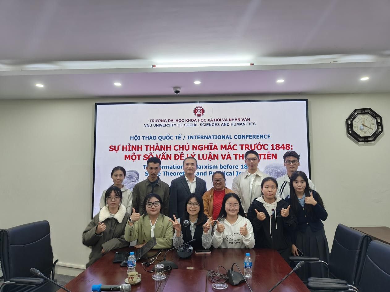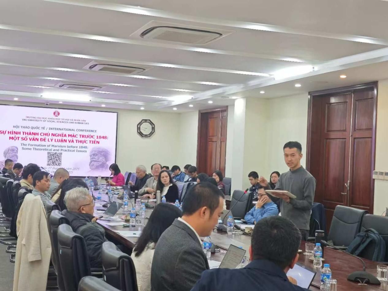 12月27日,马克思主义学院赴越访学研修团参加由河内国家大学所属人文与社会科学大学举办的“1848年前的马克思主义形成:若干理论与实践问题”国际研讨会。河内国家大学所属人文与社会科学大学副校长邓氏秋香副教授、哲学系主任范黄江博士、四川大学马克思主义学院院长蒋永穆教授、重庆交通大学马克思主义学院院长张晓平教授,以及来自河内师范大学、越南社会科学翰林院、法国巴黎第八大学等多所高校和科研机构的国际学者出席本次研讨会,越南《人民报》《新河内报》等新闻媒体代表也到场进行报道。