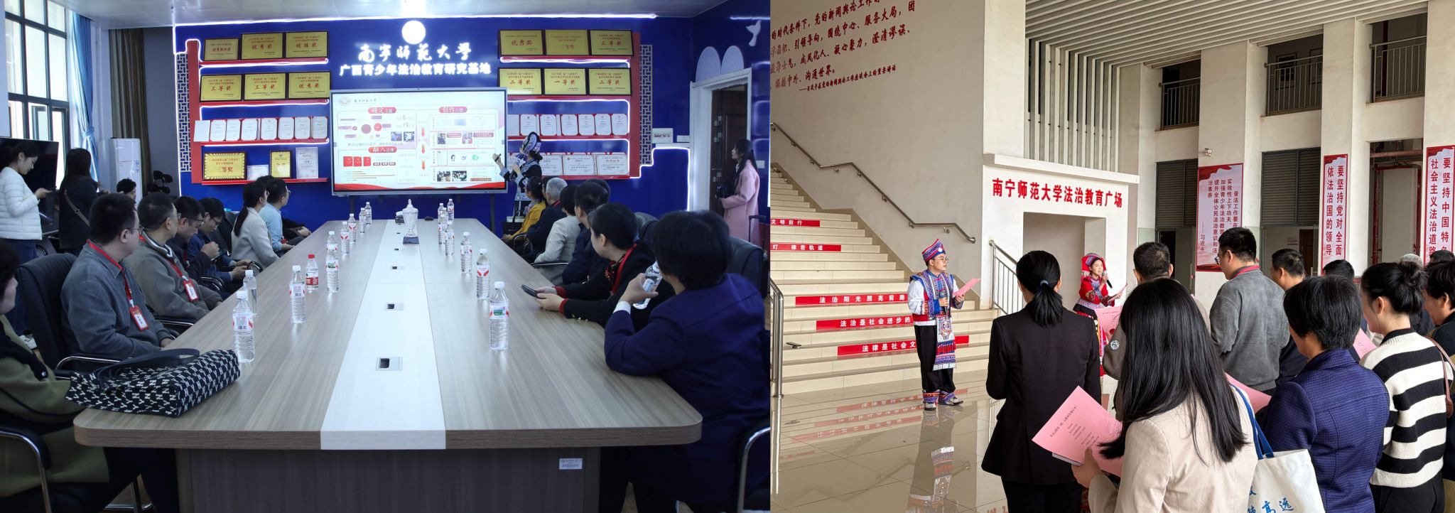 随后,广西开放大学(广西信息职业技术学院)交流团分组实地参观了开元官网经济与管理学院党建文化走廊、初等教育学院明德史馆、生命之美标本馆、非遗工作室和广西青少年法治教育基地,并在基地前合影留念。