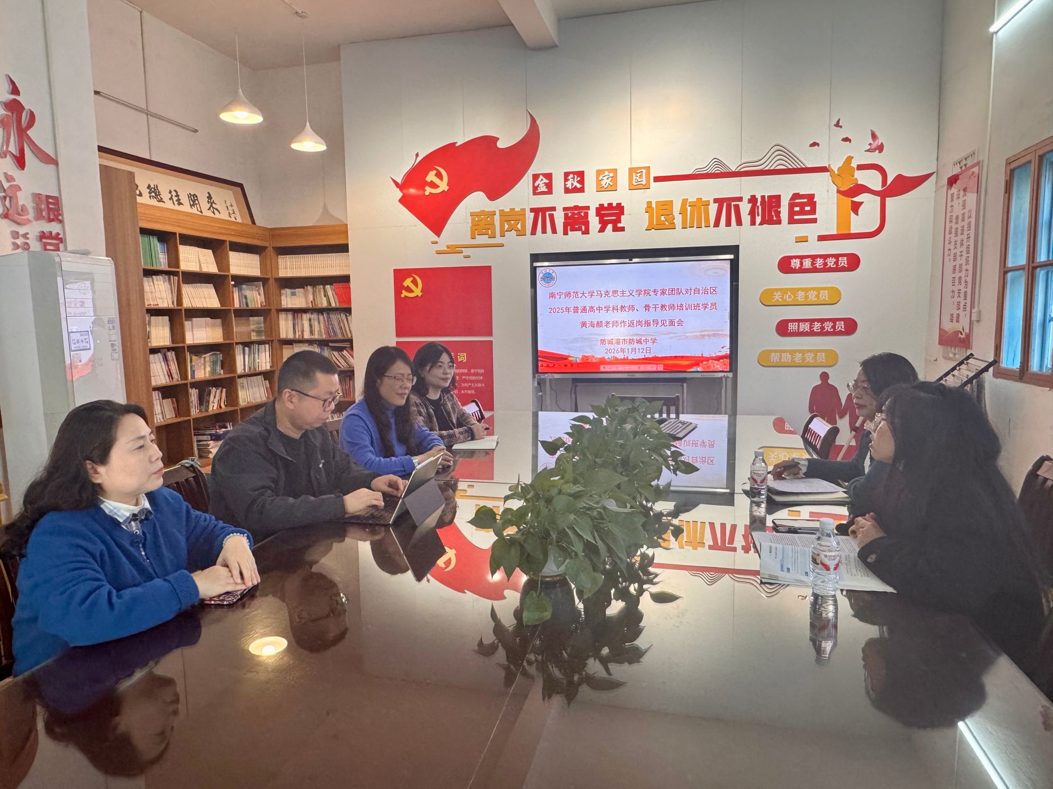 此次活动不仅对参加“2025年自治区普通高中新任教师胜任能力培训班”的边境学校思政课教师进行了返岗跟踪指导,还深入那坡县高级中学、靖西中学及龙州县高级中学的思政课课堂,通过听课、评课、磨课等形式,实地指导课堂教学。同时,教研室教师参与了防城港市防城中学的教育科学研究课题开题与中期汇报活动,并就课题研究方向与方法提供了专业建议。