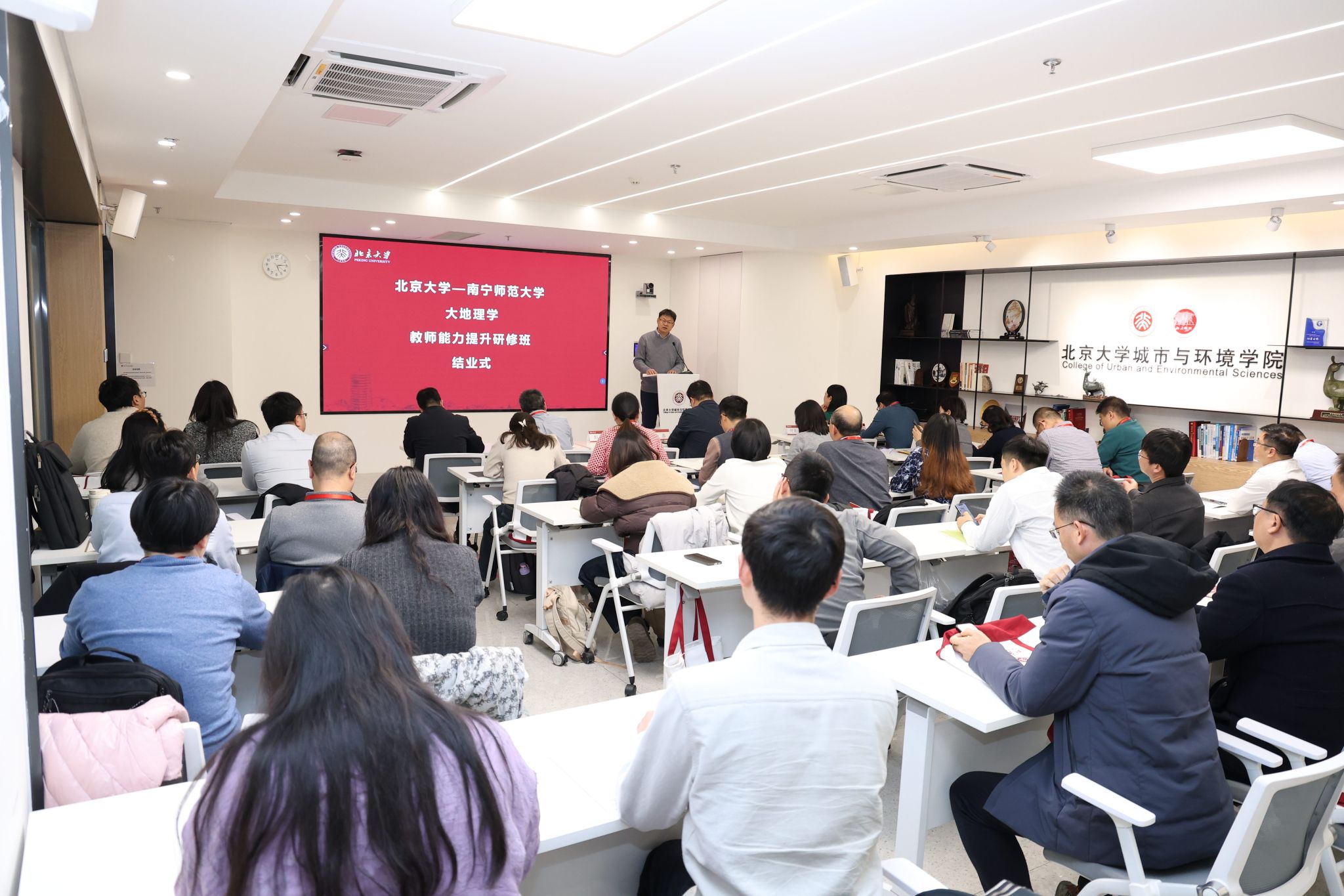 1月23日下午,研修班举行了简朴而庄重的结业式,为期五天的学习圆满落幕。结业仪式上,北京大学城市与环境学院党委书记、院长彭建教授出席并致辞,开元官网地学部教师代表秦年秀、孙建飞、黄富、陆汝成四位老师依次分享了学习体会与收获。