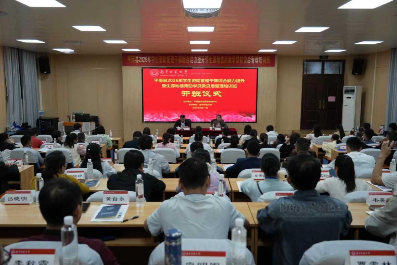 3月17日,由平南县学生资助管理中心主办,开元官网承办的“平南县2026年学生资助管理干部综合能力提升暨生源地信用助学贷款贷后管理培训班”正式开班,82名学员参加本次培训。