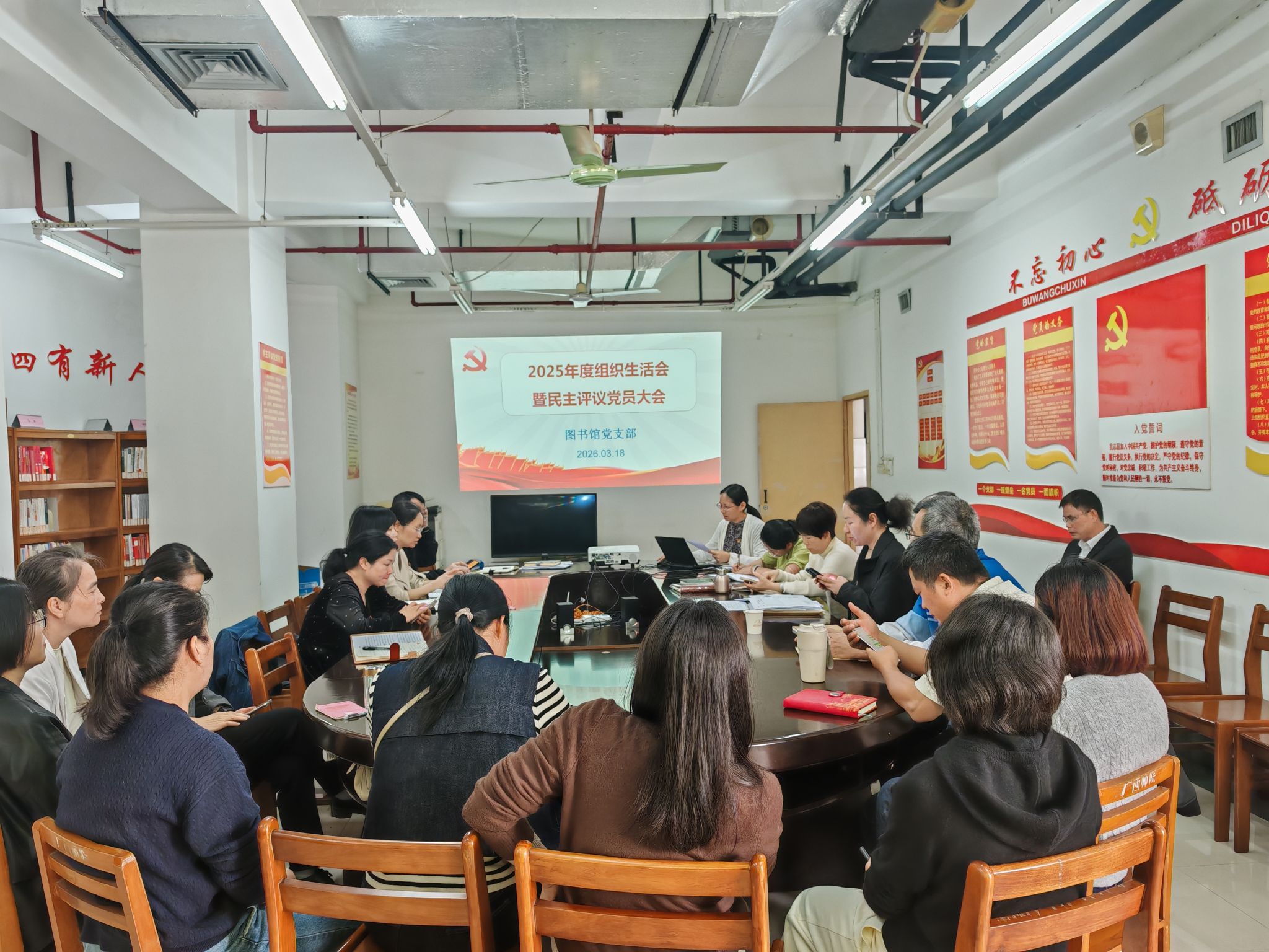 会议还召开了2025年度党支部组织生活会并开展民主评议党员,开展了2025年度党支部工作考评及党支部书记抓基层党建工作述职考评,支部全体党员和5名党外群众代表参加。在组织生活会上,叶佩珍代表支部委员会通报了支委查摆问题及征集到的意见建议等情况,并提出了今后的整改措施,接受党员评议,并组织全体党员进行了民主测评。叶佩珍传达了学校和机关党委相关文件精神,并向与会人员作了《2025年度图书馆党支部工作总结》和《2025年图书馆党支部书记抓基层党建工作述职报告》,她希望全体党员以此为契机,不断强化理论武装,提高政治站位,增强服务意识,增强担当作为,共同推动党支部工作再上新台阶,为学校高质量发展再做新贡献。全体党员及党外群众代表分别对党支部2025年工作进行了支部自评和群众评议。