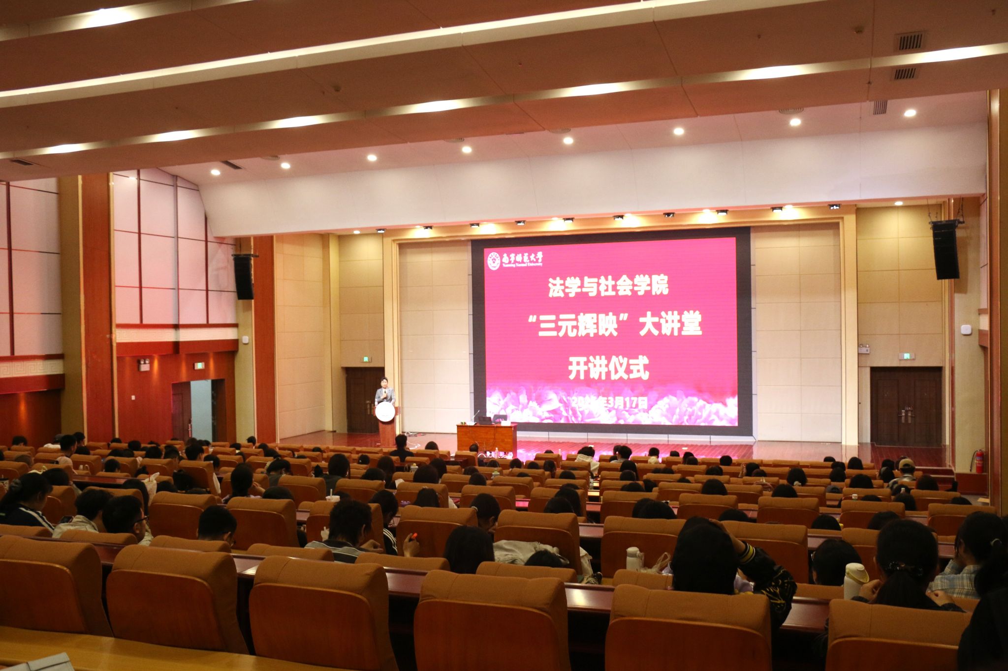 为深入贯彻树立和践行正确政绩观学习教育要求,营造浓厚学术氛围,3月17日晚,法学与社会学院以马年新春开新局、启新程的奋进姿态,在五合校区文楼114报告厅隆重举行“三元辉映”大讲堂开讲仪式暨首场报告会。学院党委书记许建、副院长吴少进(主持行政工作)和党委副书记张建梅,教师代表、研究生代表和本科生代表近200人参加了本次活动。