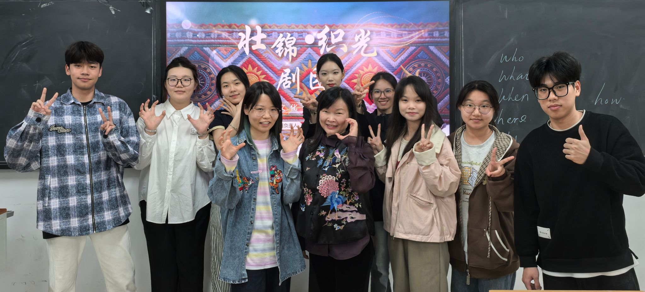 活动现场,赵诗静团队的“语翼启梦·大学生暑期三下乡实践”项目、肖思锜团队的“壮锦·织光剧团——中华优秀传统文化传承传播者”项目、卢巨树团队的“朋辈伴学·艺体疗心”项目依次展示。各团队围绕项目背景、实施内容、创新亮点及预期成果展开详细汇报,展现出扎实的前期准备与良好的精神风貌。项目紧密围绕铸牢中华民族共同体意识主题,分别以三下乡支教、戏剧融合教学、艺体疗愈的形式对内对外讲好中国故事。高飞雁副院长认真听取各项目汇报后,逐一进行细致点评与针对性指导,从汇报逻辑、PPT呈现、答辩技巧等方面提出具体改进建议。