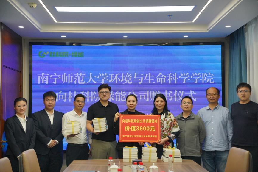 交流活动结束后,现场举行了简短而隆重的赠书仪式。何英姿院长代表学院向广西桂科院·绿能环保科技有限公司赠送了总价值3600元的环境领域专业书籍,涵盖了生态保护、污染控制技术、环境管理等多个方向,此次赠书旨在助力企业技术人员更新专业知识、提升业务能力,进一步丰富校企合作内涵,深化产学研协同发展。