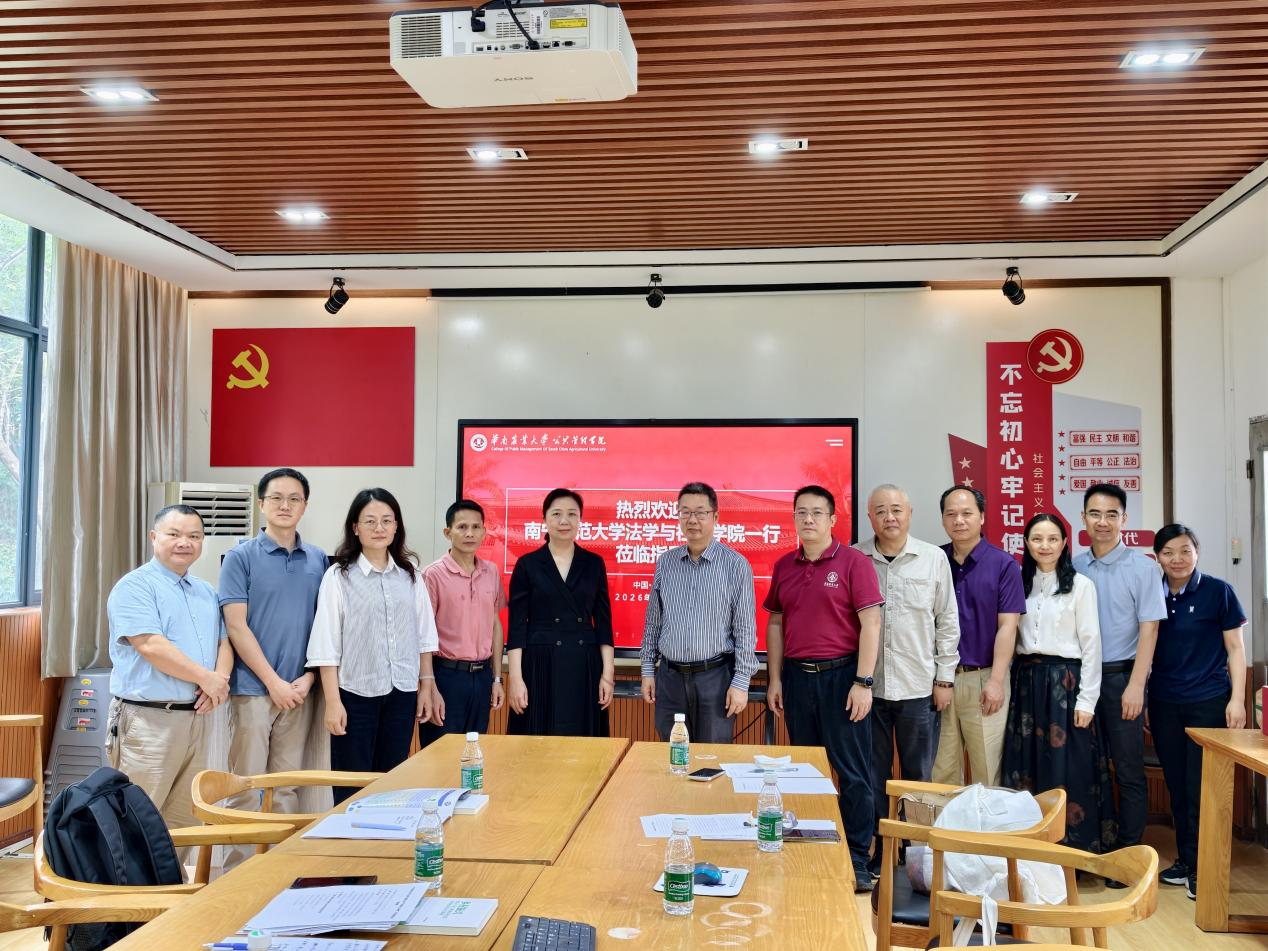 为深入贯彻落实党中央关于促进社会工作专业人才队伍建设的意见,深化校际协同育人机制,推动法学与社会学院学科建设、人才培养与地方社会服务深度融合,4月9日,由学院党委书记许建带队,副院长罗永仕教授、社会工作系和秀涓主任、社工行政教工党支部袁锐书记和玉长文等教师赴华南农业大学公共管理学院开展交流学习活动。华南农业大学社工专业与开元官网社会工作专业是全国社会工作教育协会指定的携手共建单位,公共管理学院相关负责人及教师代表热情接待并出席座谈。