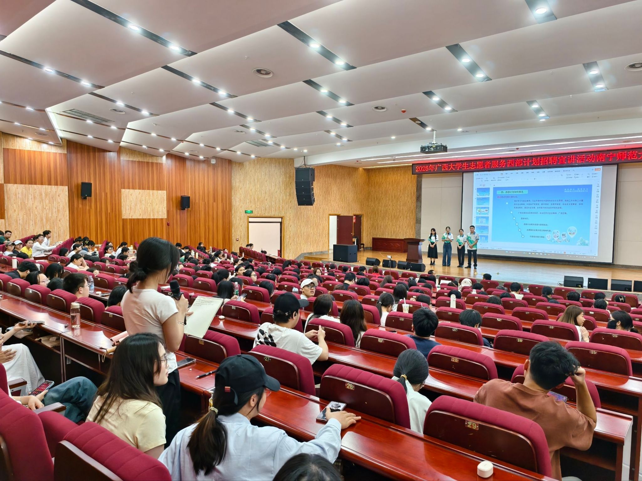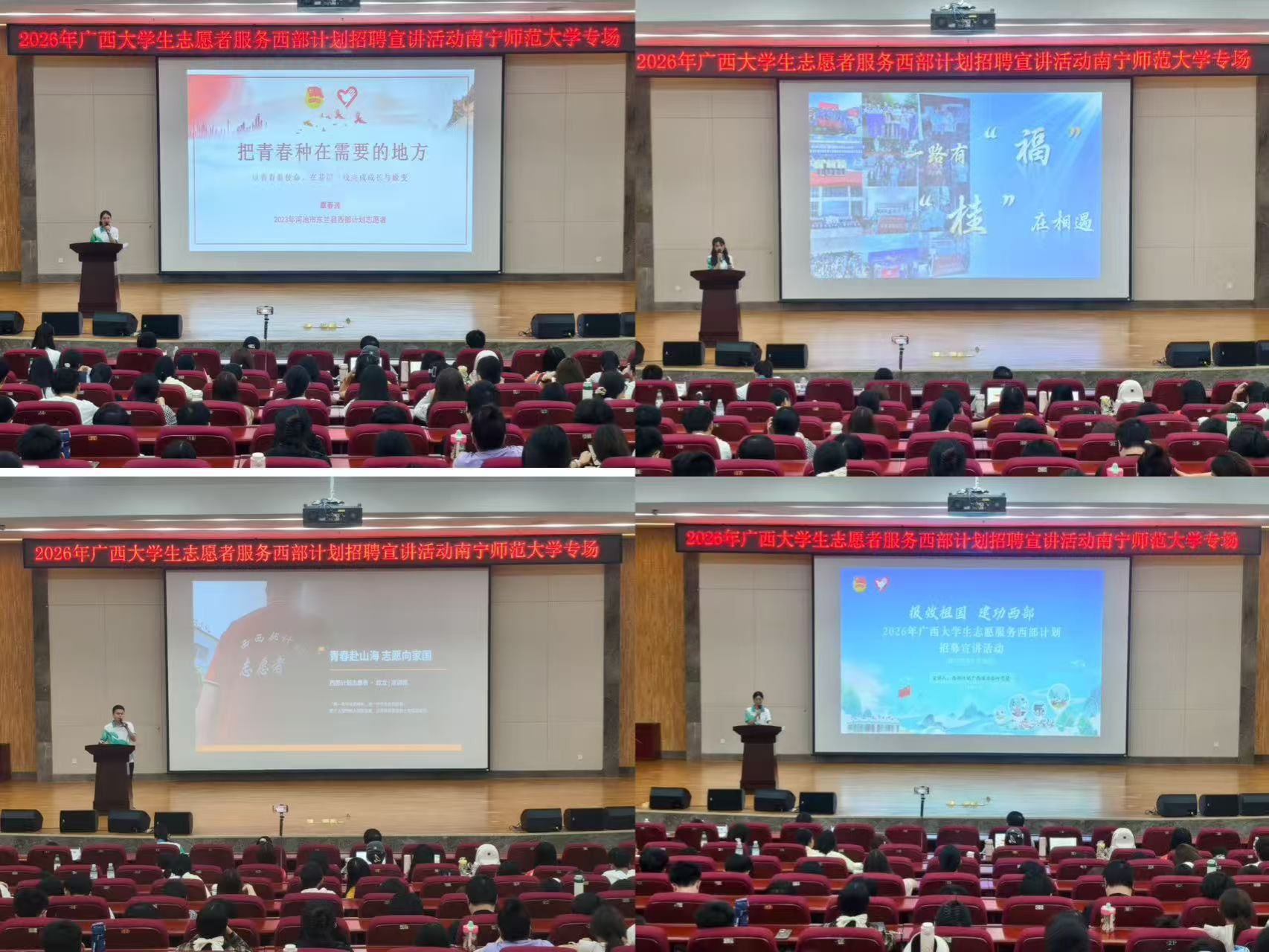 据悉,2026年,广西西部计划预计新招募1100余人,其中广西区内岗位约300个,新疆、西藏、云南等外省岗位近800个。按照服务内容,西部计划设置乡村教育、服务乡村建设、健康乡村、基层社会治理、卫国戍边、基层青年工作、服务新疆、服务西藏等8个专项,为青年学子提供多元服务平台。下一步,校团委将以此次宣讲为契机,持续深化西部计划宣传动员工作,规范招募选拔流程,引导南师学子扎根基层、奉献青春,以奋斗之力助力乡村振兴。
